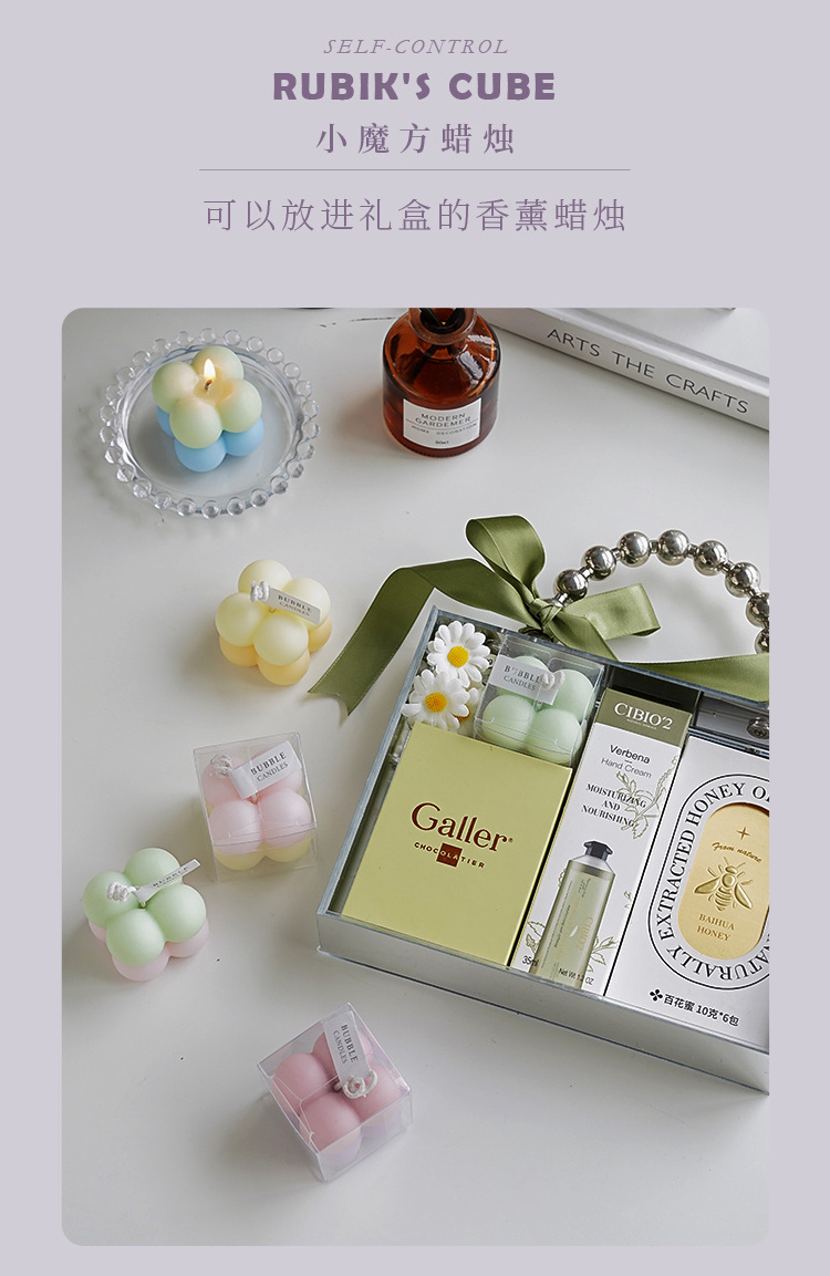 gradient small rubik's cube aromatherapy candle morandi pink purple two-tone (fragrance: oregano and narcissus)