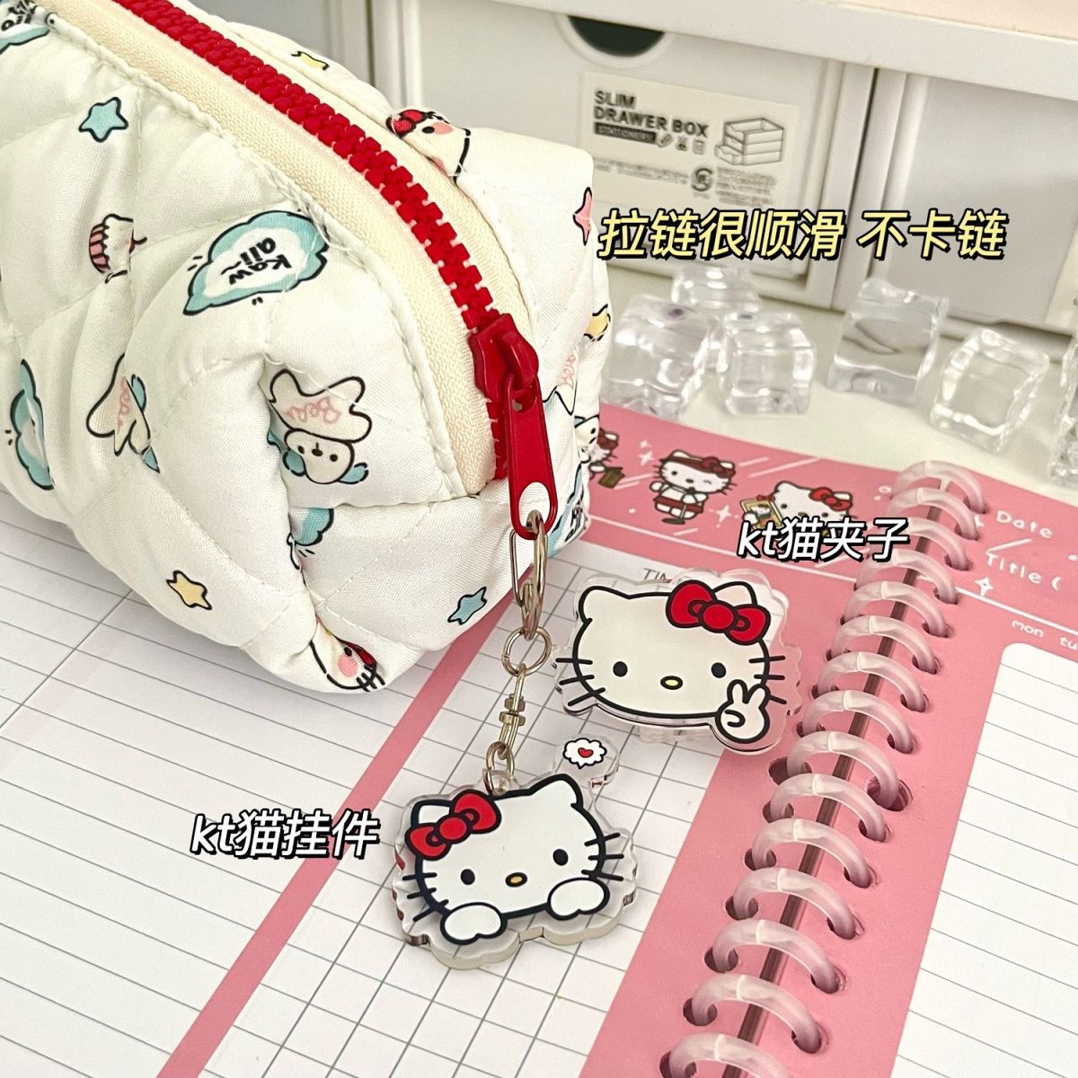 red zipper kt pencil case + kt pendant + kt clip
