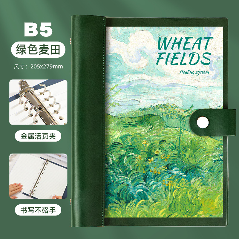 b5 transparent loose spiral notebook-green wheat field