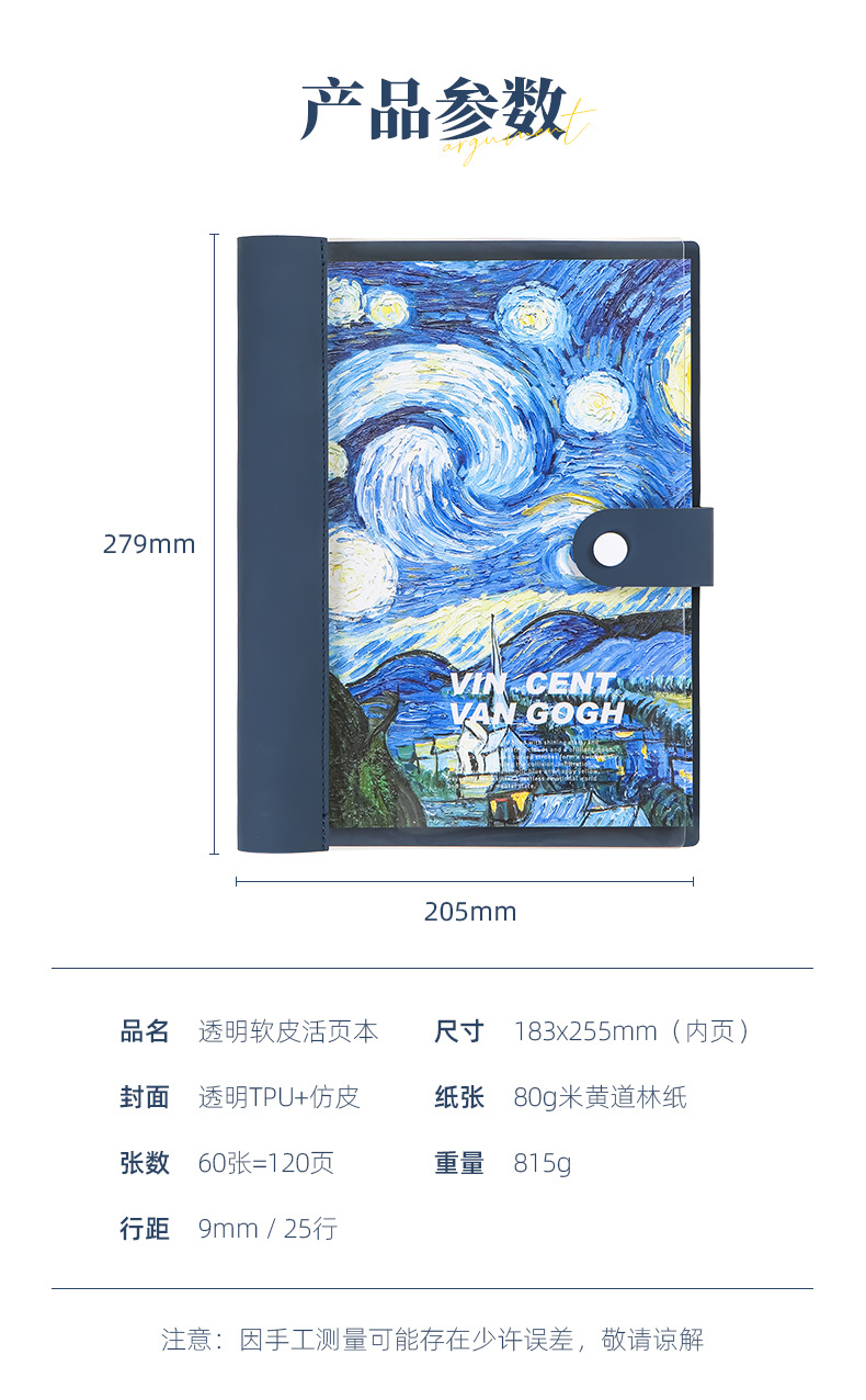 a5 transparent loose spiral notebook-starry night