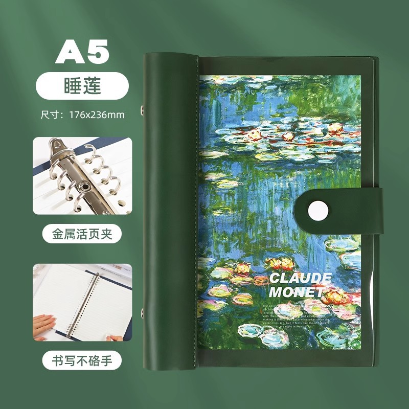 a5 transparent loose spiral notebook-water lily green