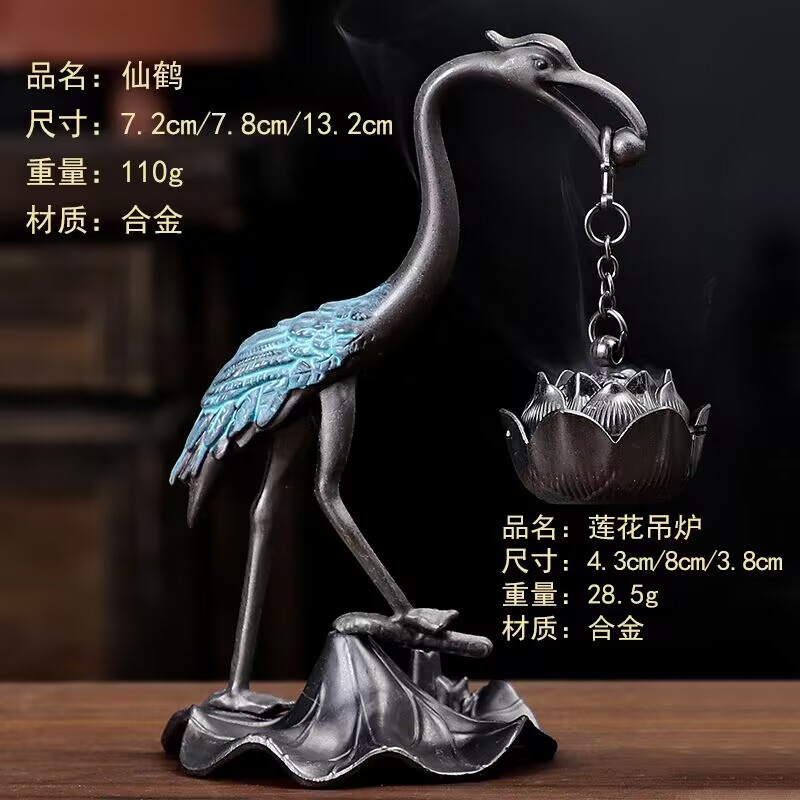 red crown crane lotus incense burner