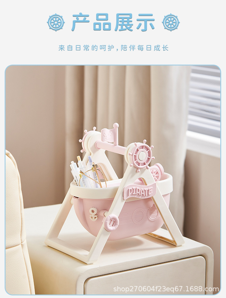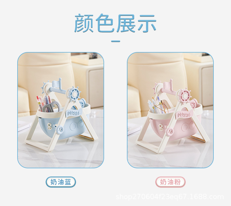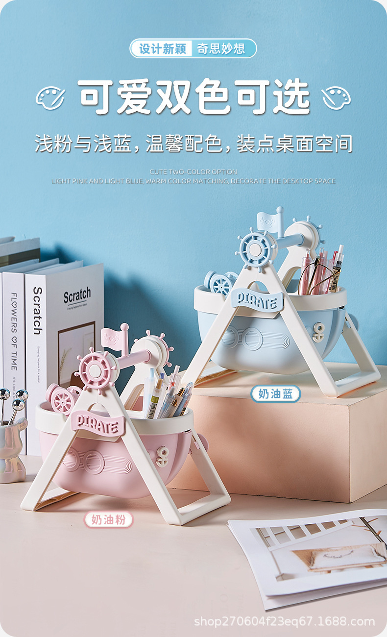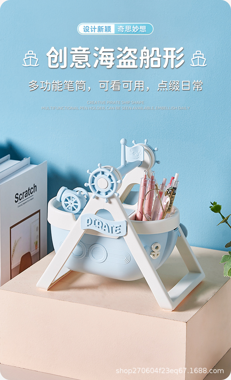 pirate ship pen container-cream blue