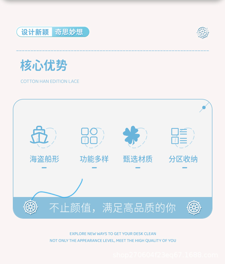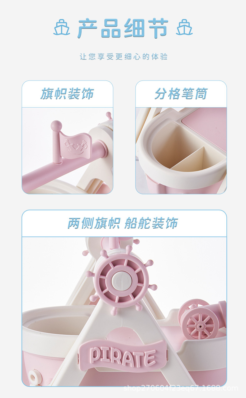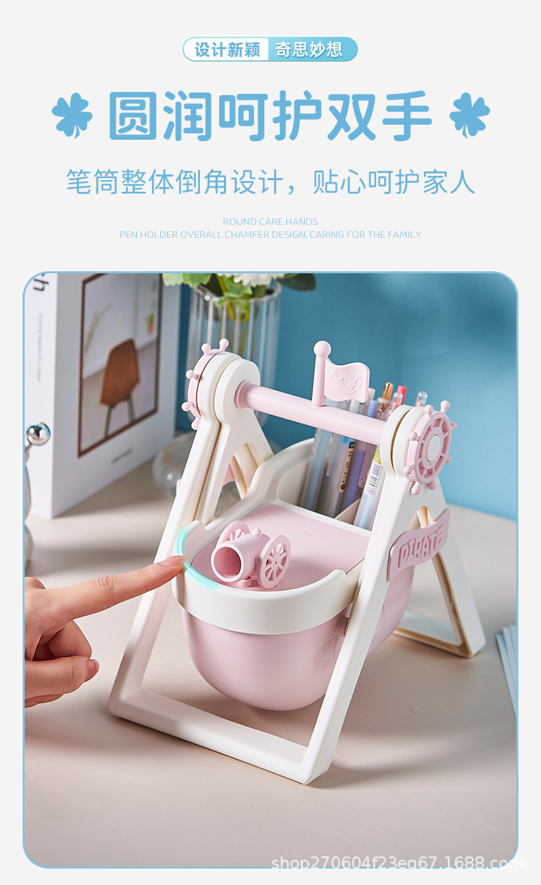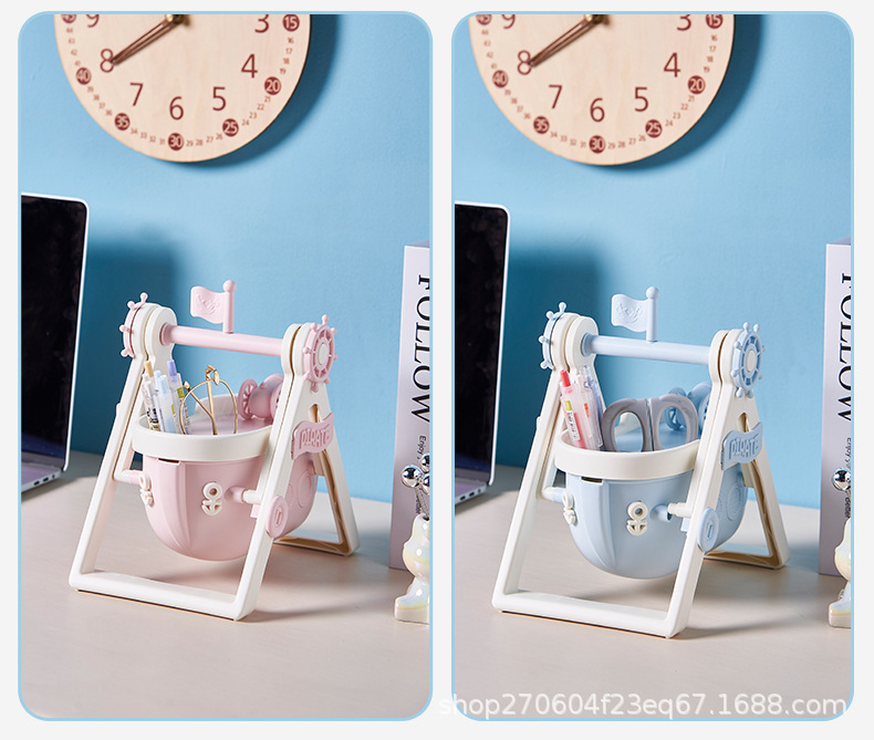 pirate ship pen container-cream blue