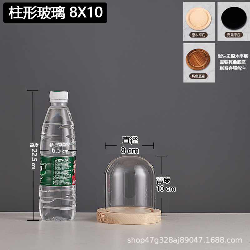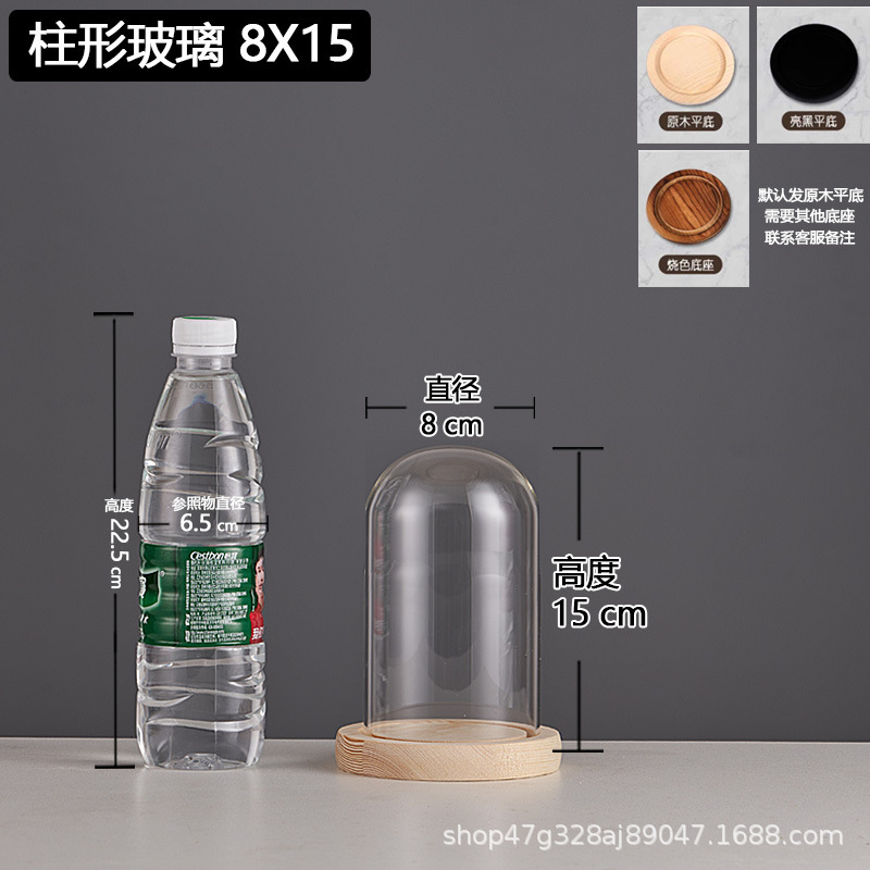 cylindrical 8*15 glass cover + solid wood base