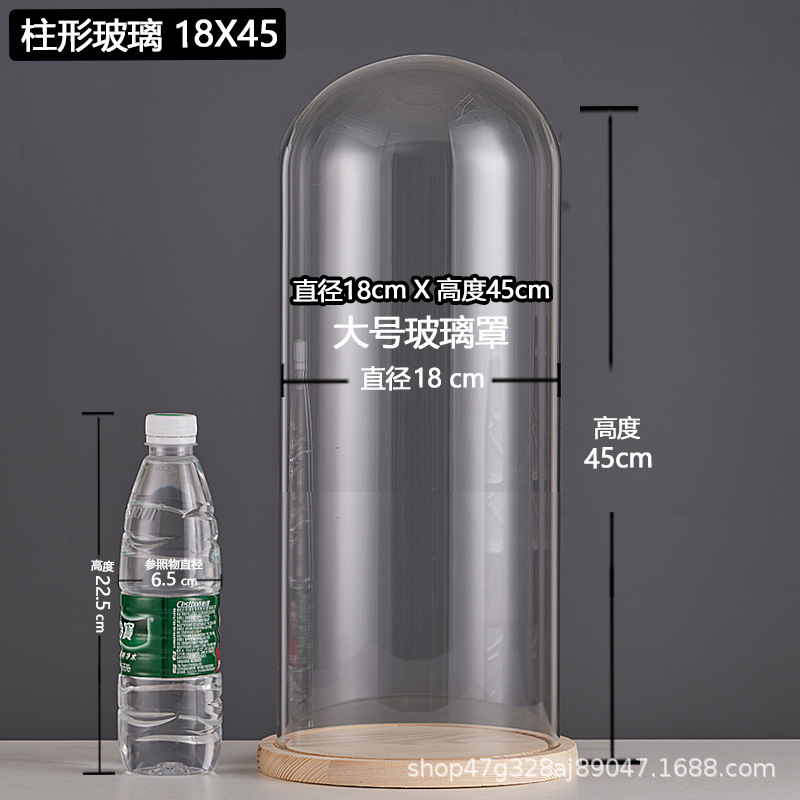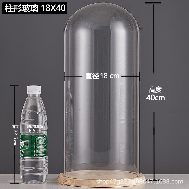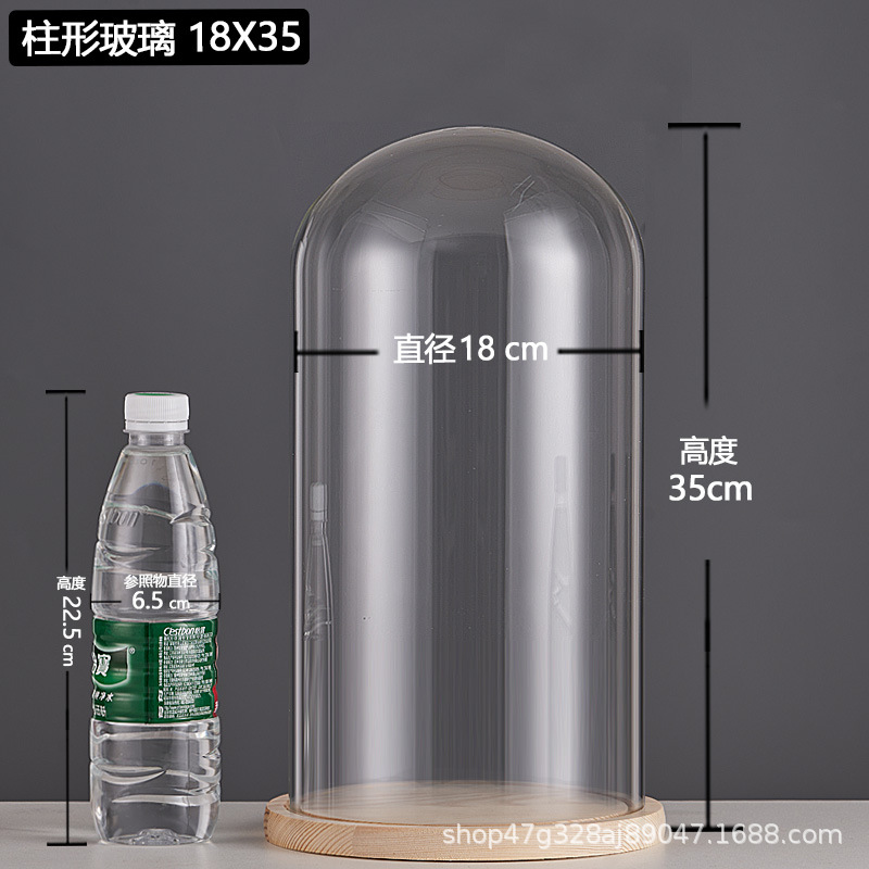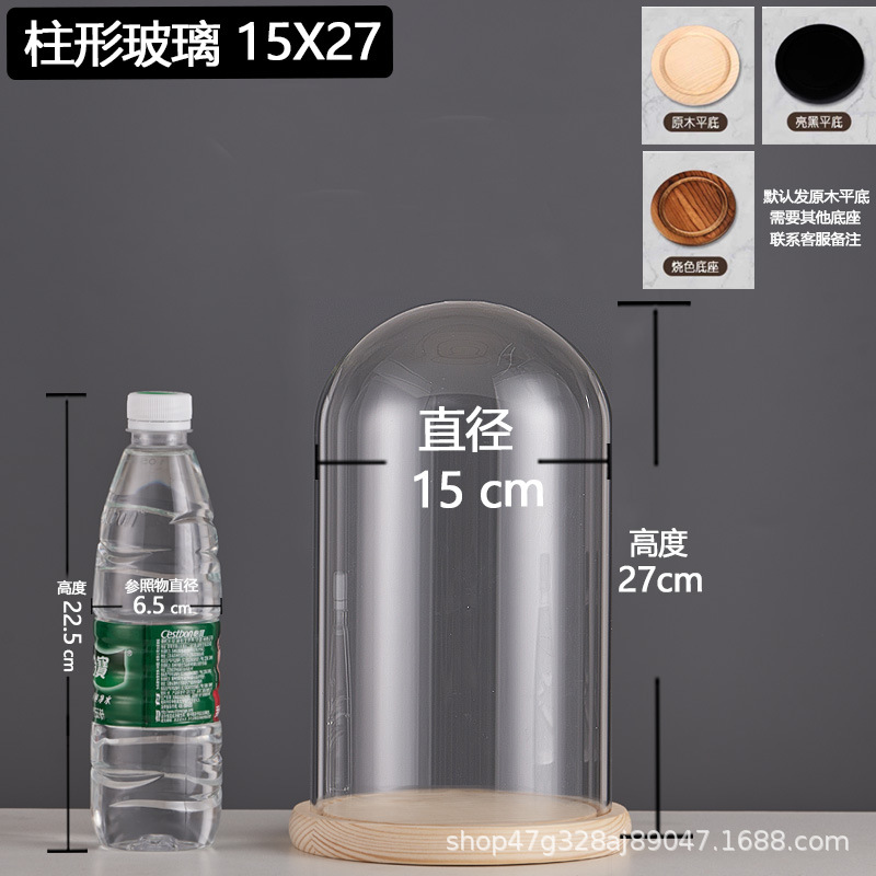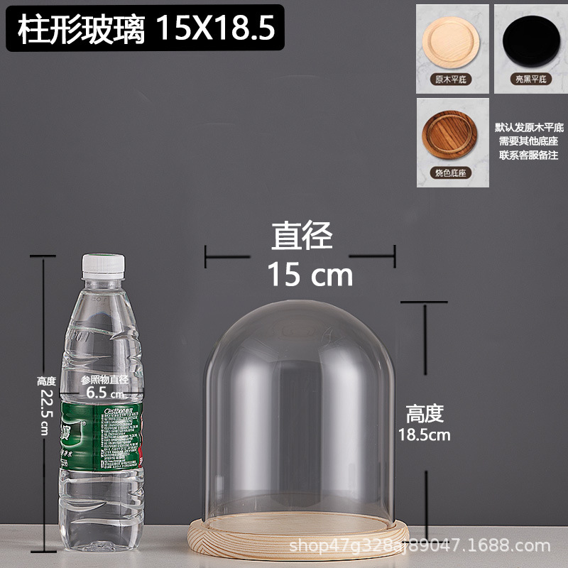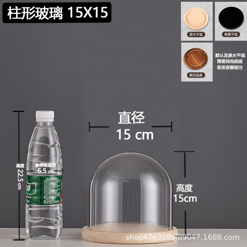 cylindrical 15*18.5 glass cover + solid wood base