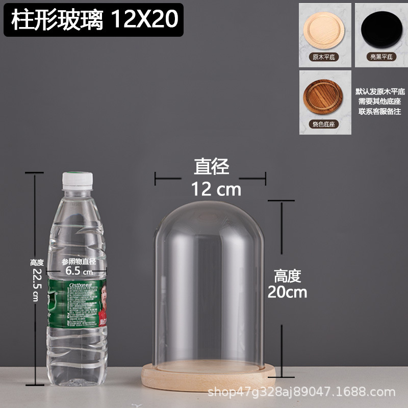 cylindrical 12*20 glass cover + solid wood base