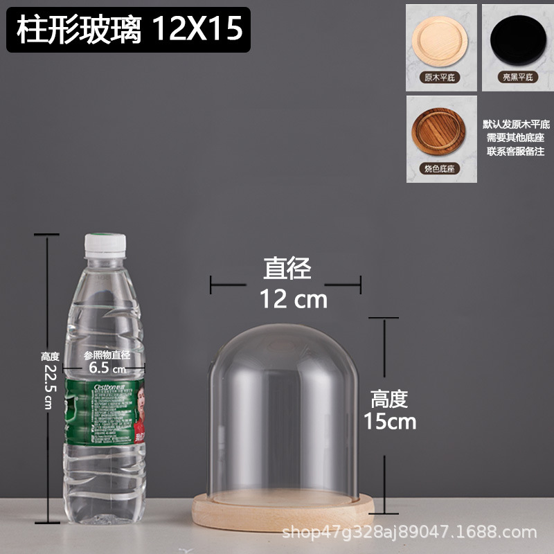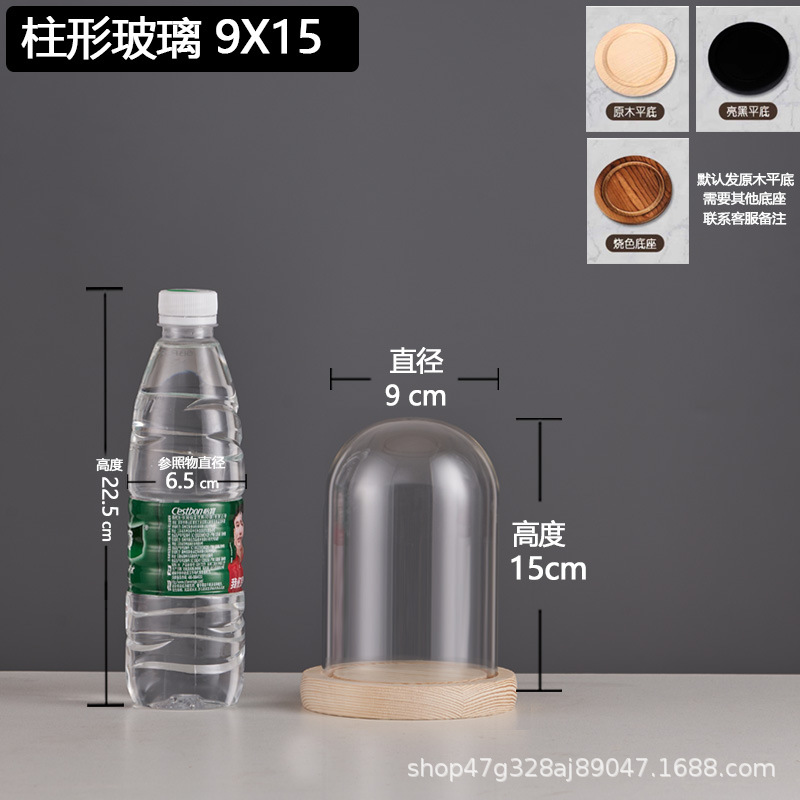 cylindrical 9*15 glass cover + solid wood base
