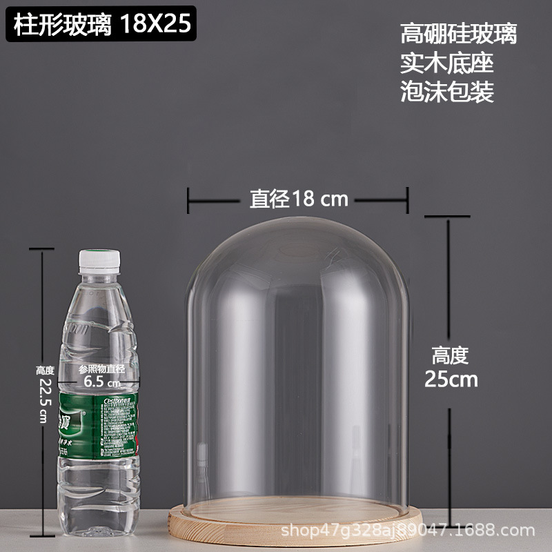 cylindrical 18*25 glass cover + solid wood base