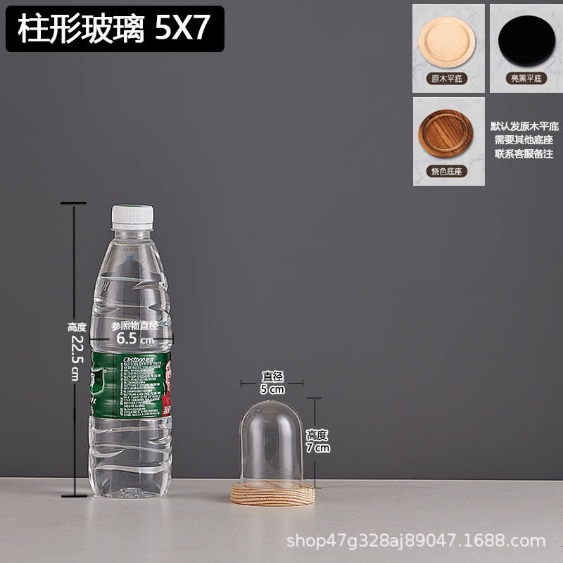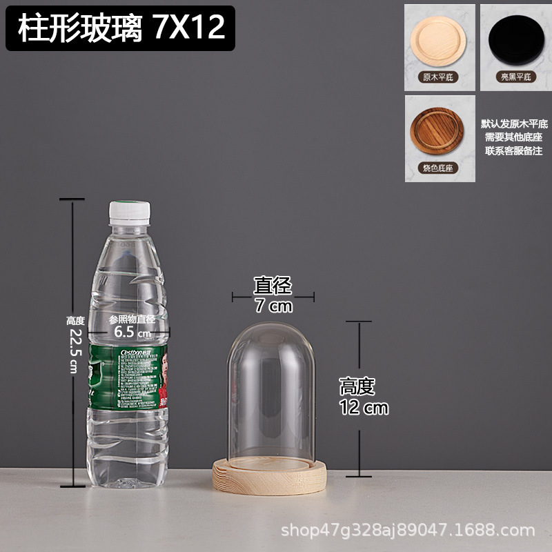 cylindrical 7*12 glass cover + solid wood base