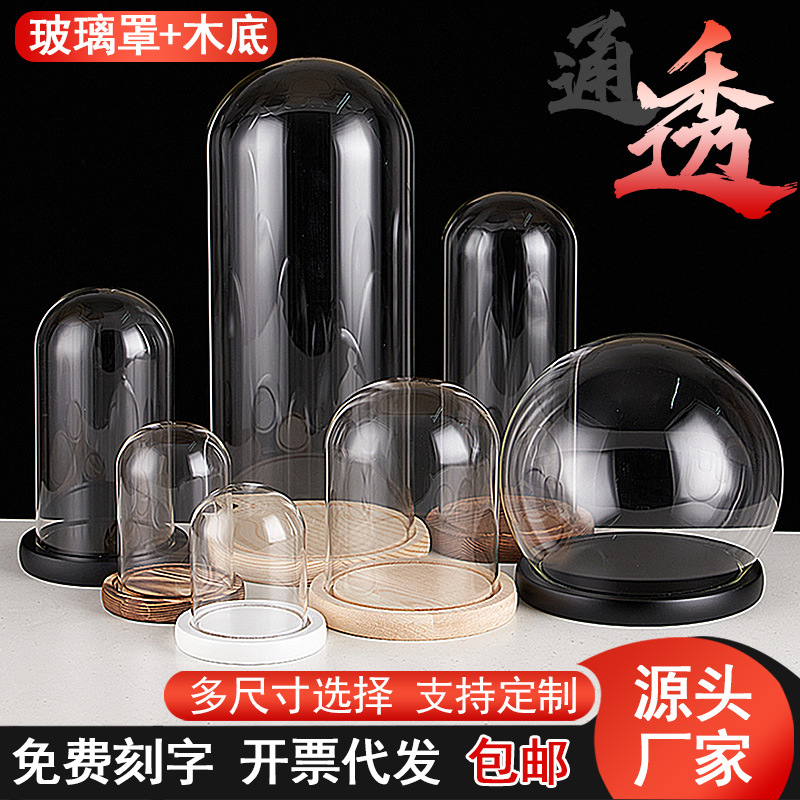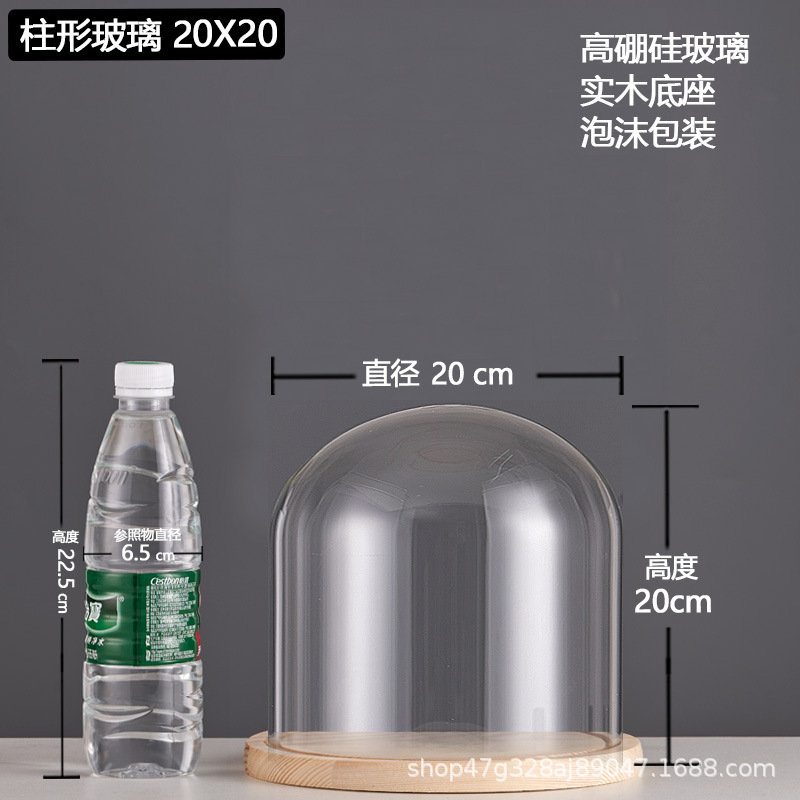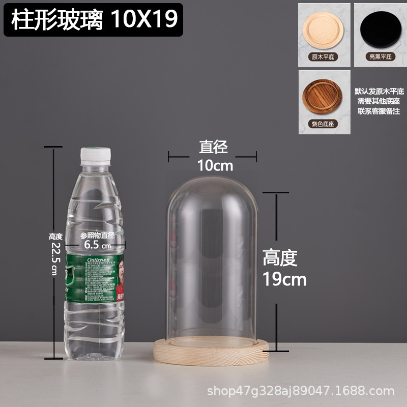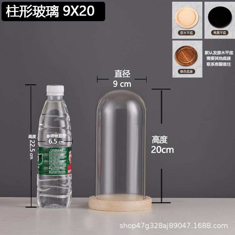 cylindrical 9*20 glass cover + solid wood base