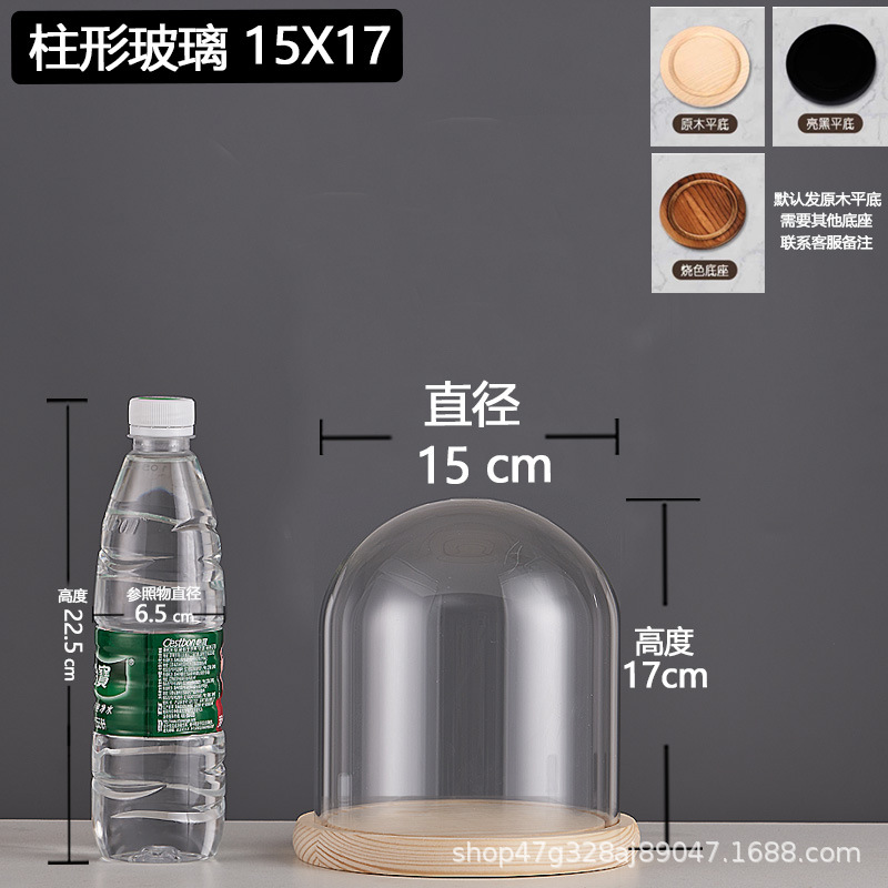cylindrical 15*17 glass cover + solid wood base
