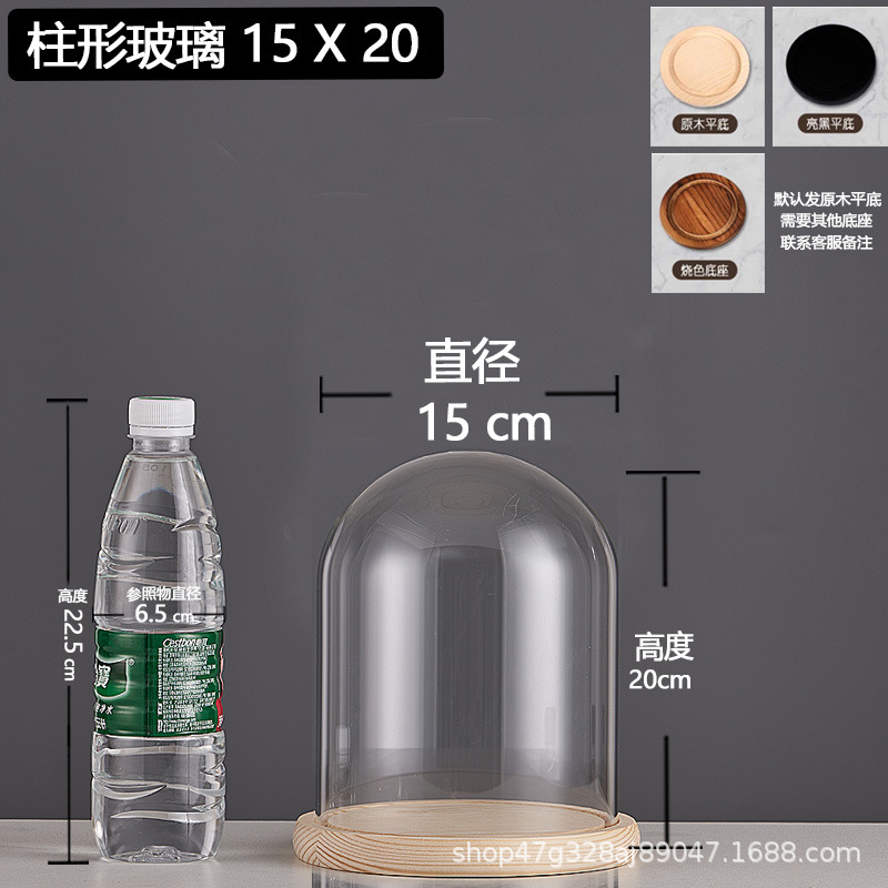 cylindrical 15*20 glass cover + solid wood base