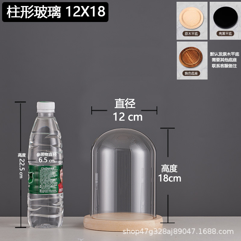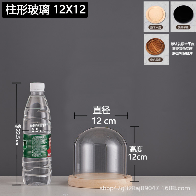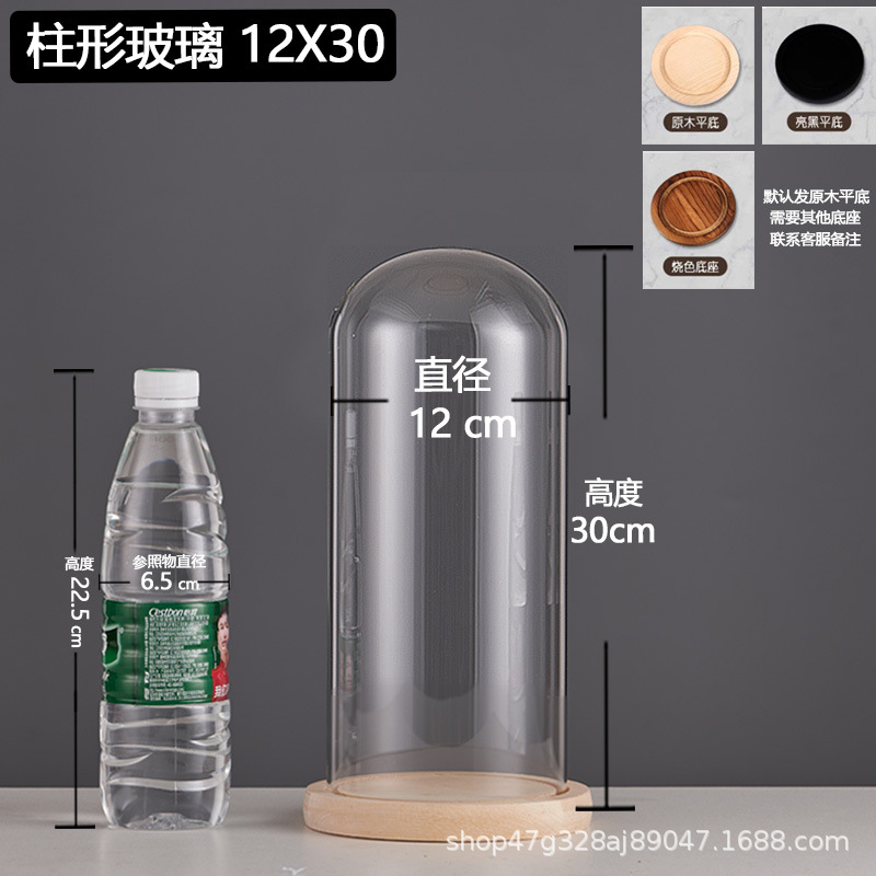cylindrical 12*22 glass cover + solid wood base