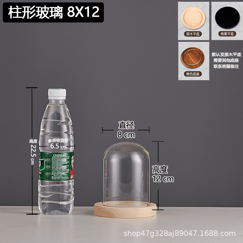 cylindrical 8*12 glass cover + solid wood base