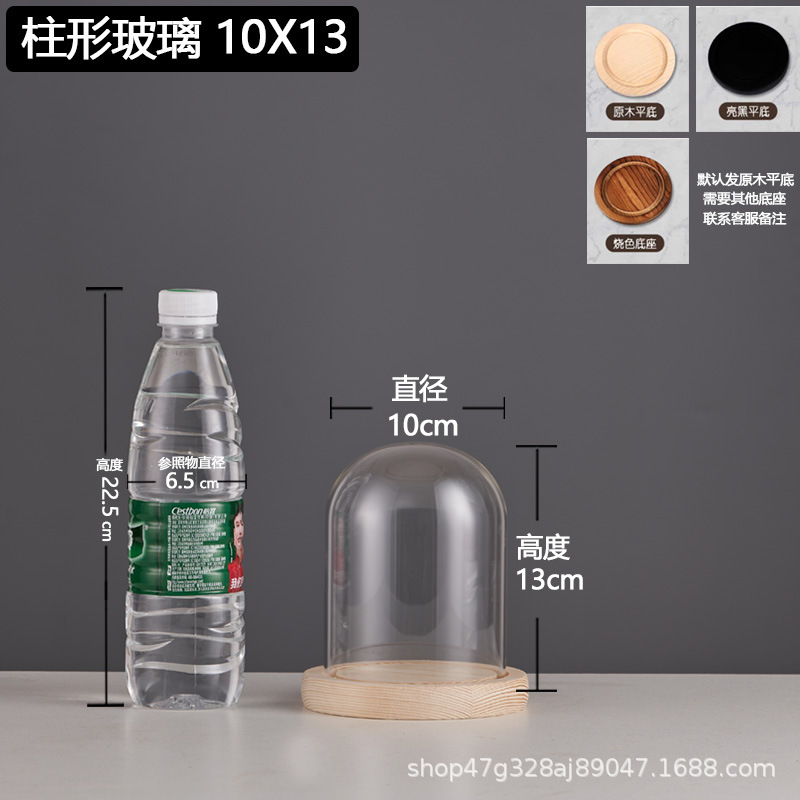 cylindrical 10*13 glass cover + solid wood base