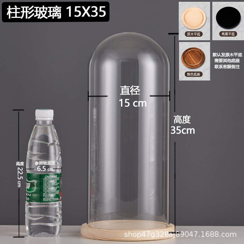 cylindrical 15*35 glass cover + solid wood base