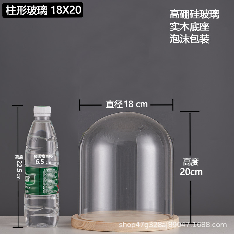 cylindrical 18*20 glass cover + solid wood base