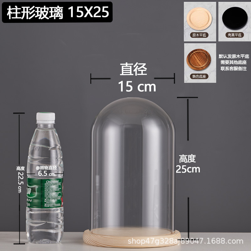 cylindrical 15*25 glass cover + solid wood base