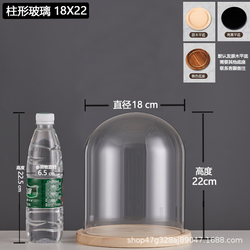 cylindrical 18*22 glass cover + solid wood base