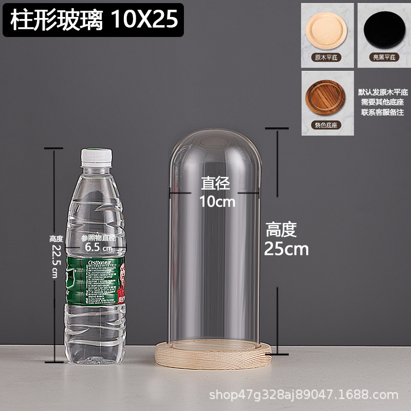 cylindrical 10*25 glass cover + solid wood base
