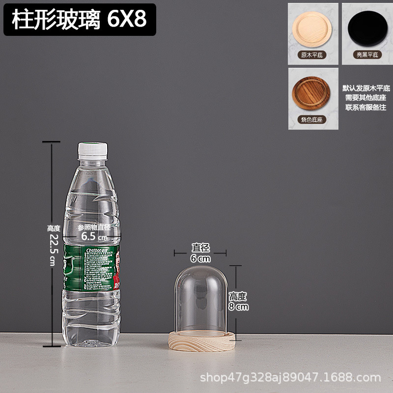 cylindrical 6*8 glass cover + solid wood base