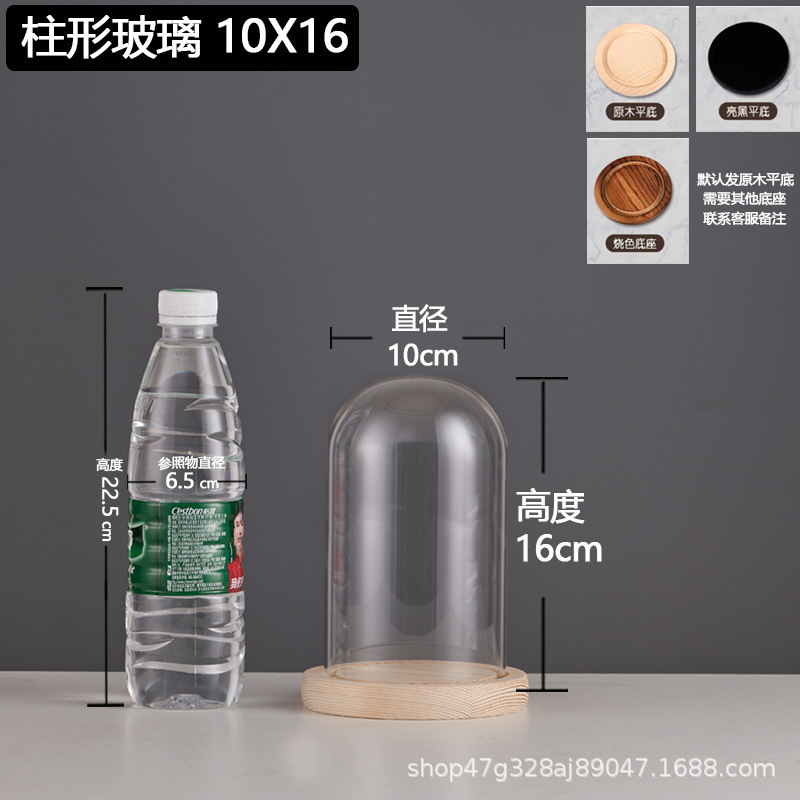 cylindrical 6*10 glass cover + solid wood base