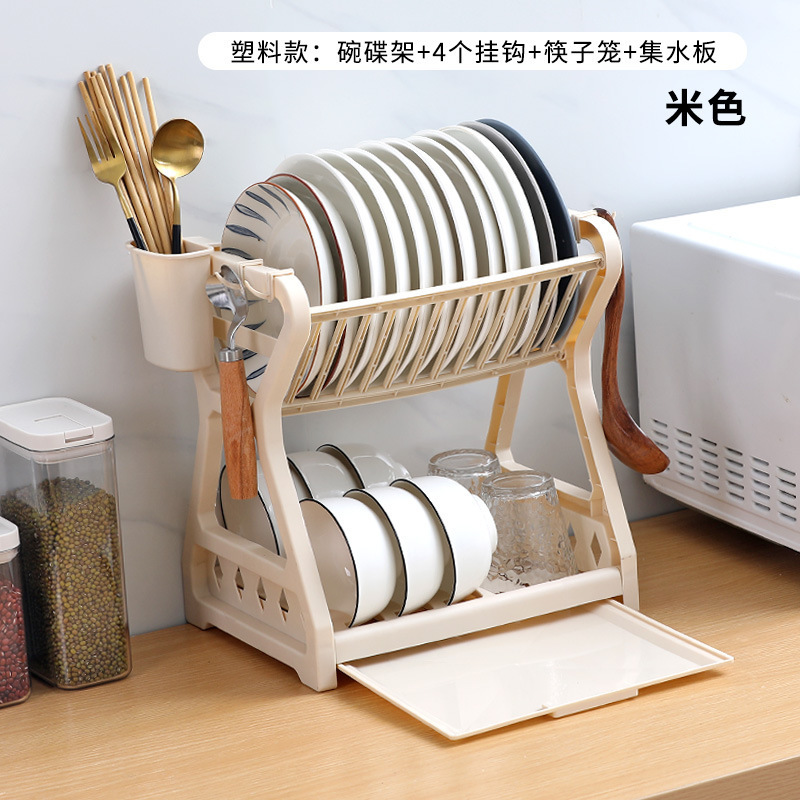 Manufacturer Direct Sale Double-Layer Drainage Dish Rack Simple Packaging (OPP Bag Style) One Case 32