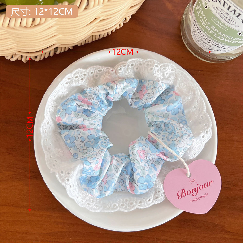 16# blue printed lace edge square scarf hair ring