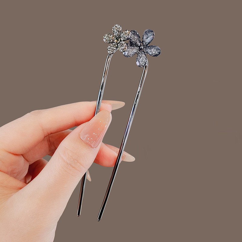 four teeth black d flower hairpin