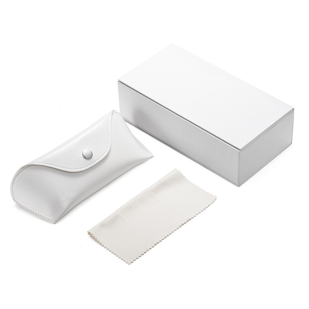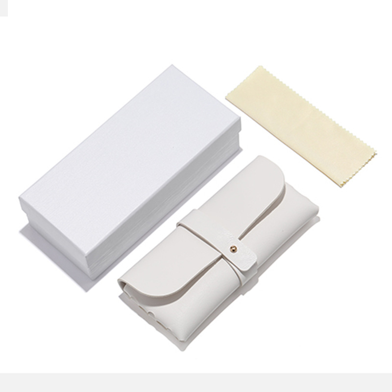 white magnetic flip box + white snap button leather box + beige mirror cloth