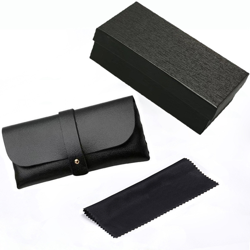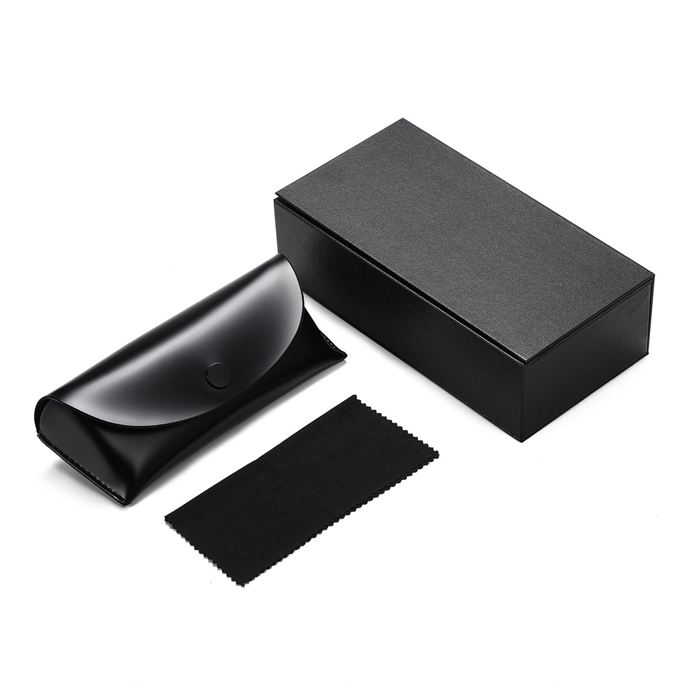 black magnetic flip box + grade a black snap button leather box + mirror cloth