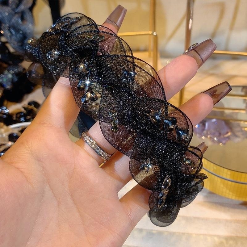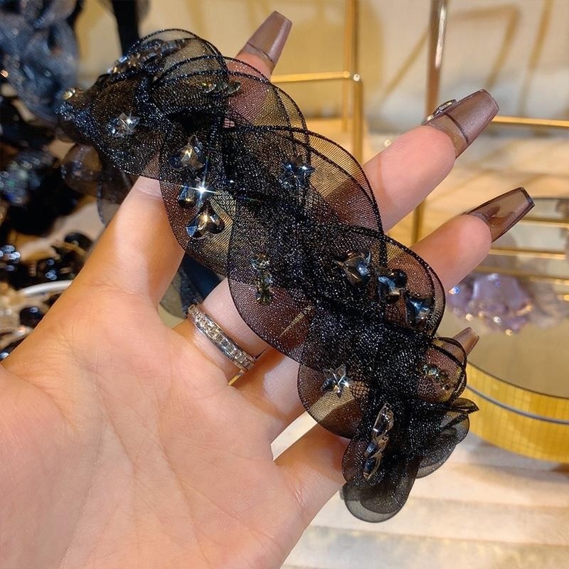 1# mesh rhinestone twist headband-black