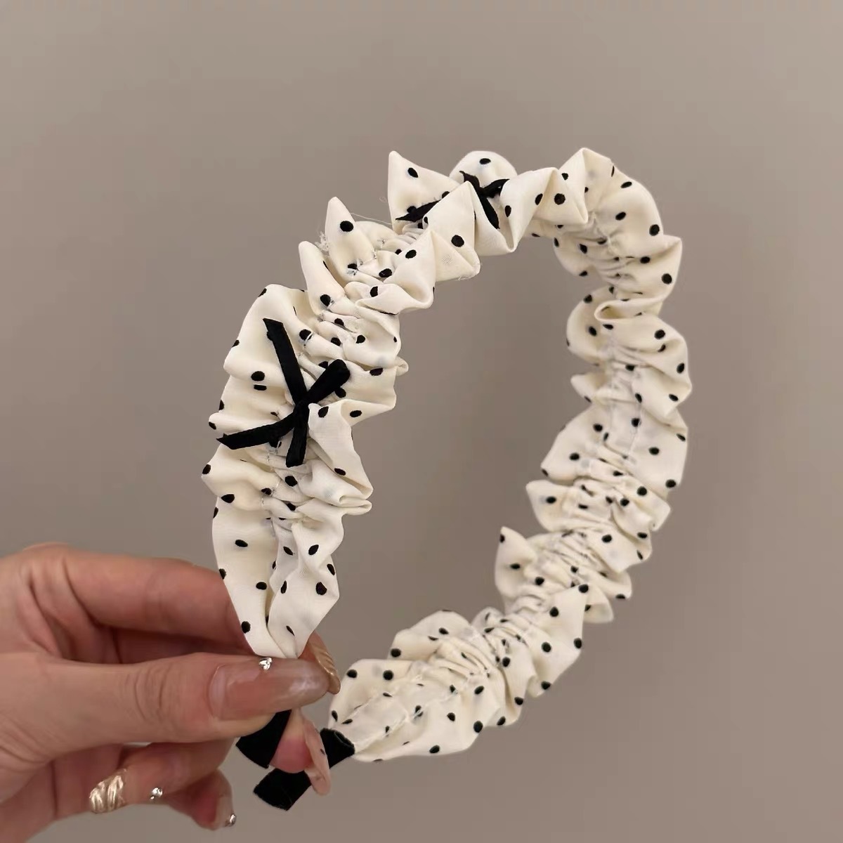bow polka dot headband-black