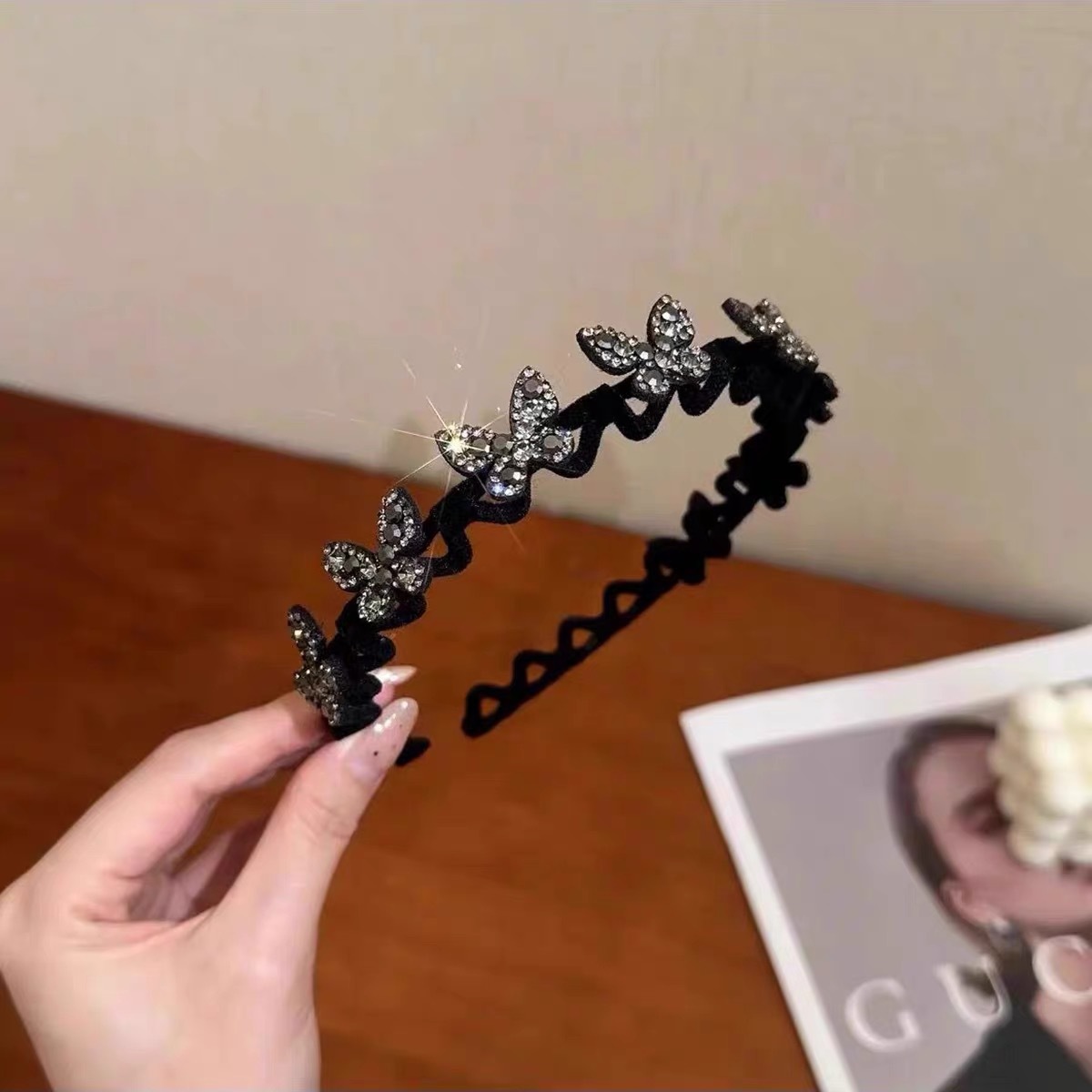 black butterfly rhinestone headband