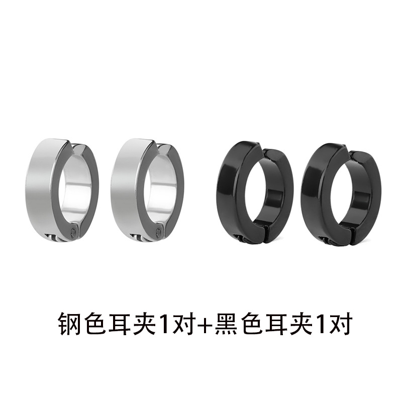 steel ear clip 037ej + pure black ear clip 031ej