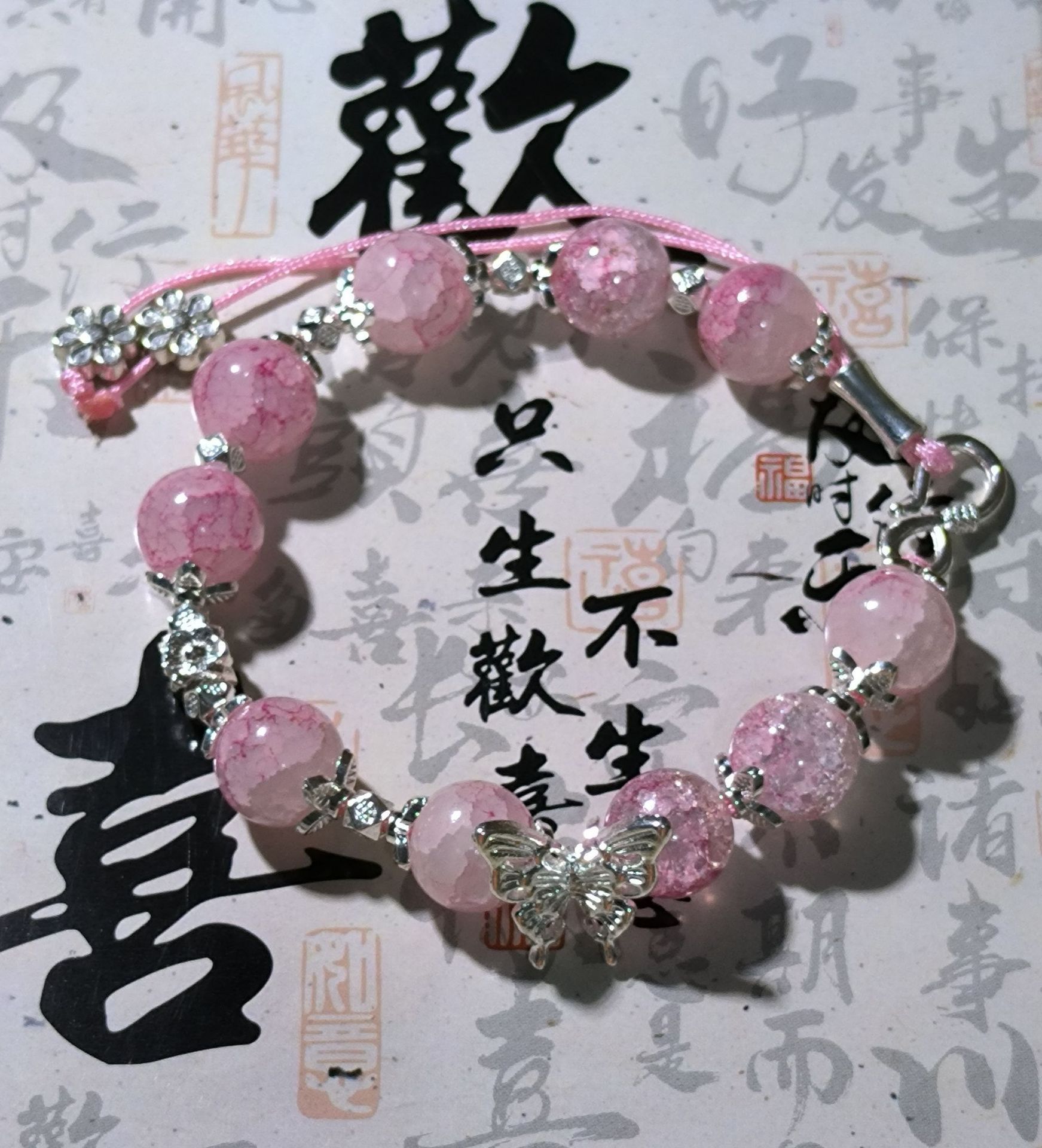butterfly pink floral bracelet