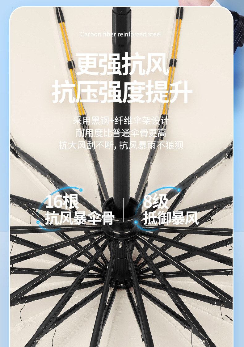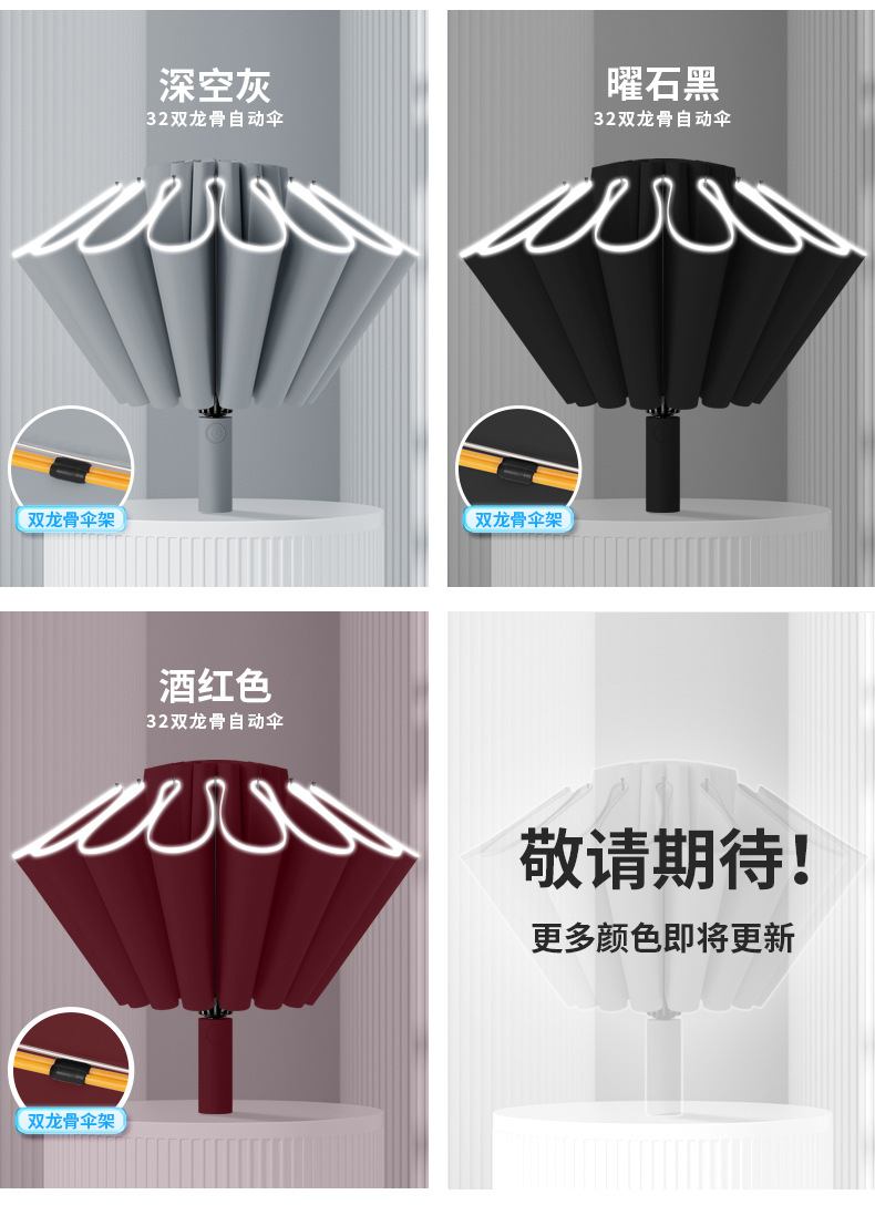 graphite black-8 bone self-opening umbrella