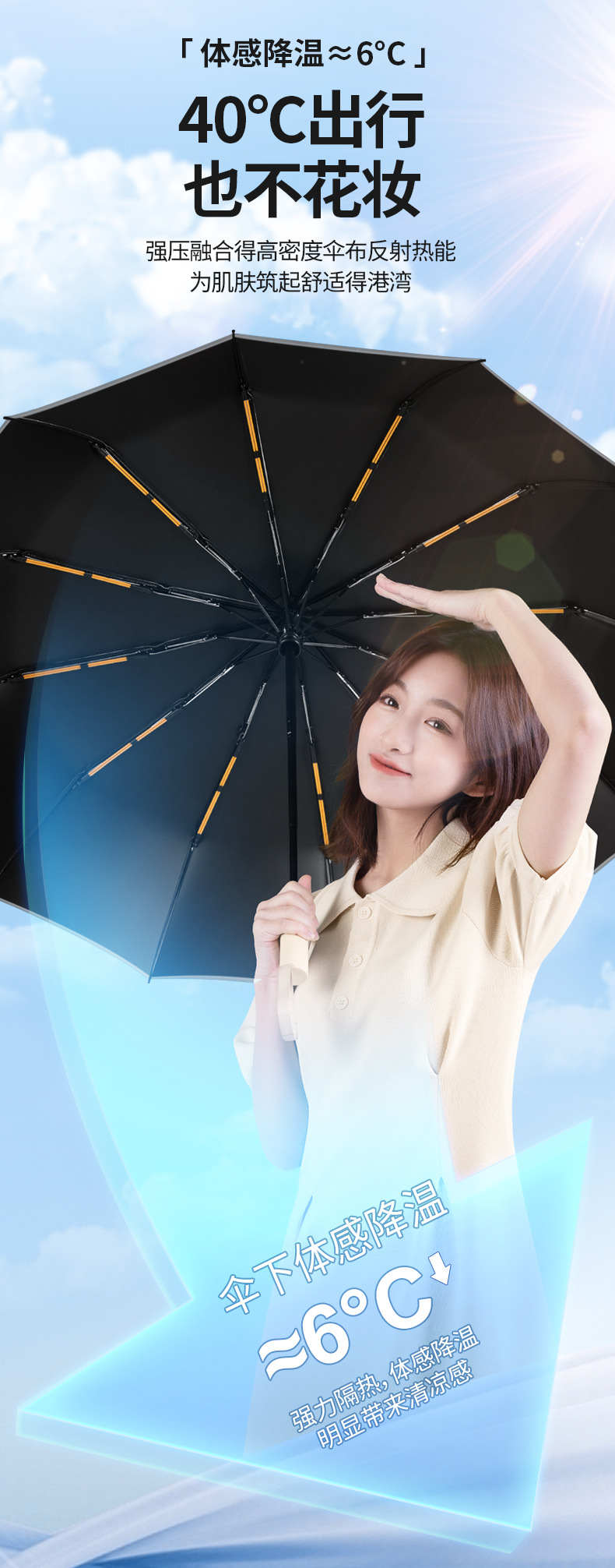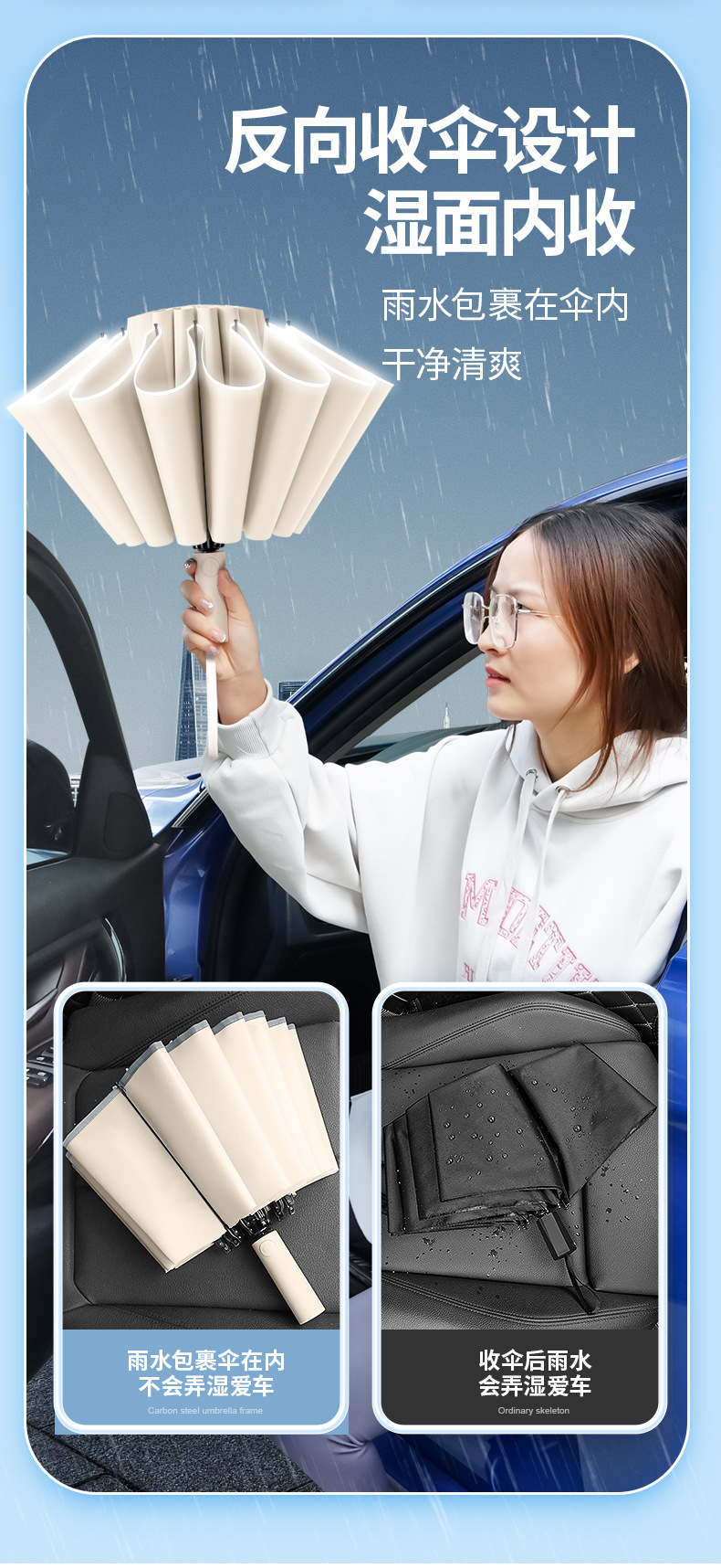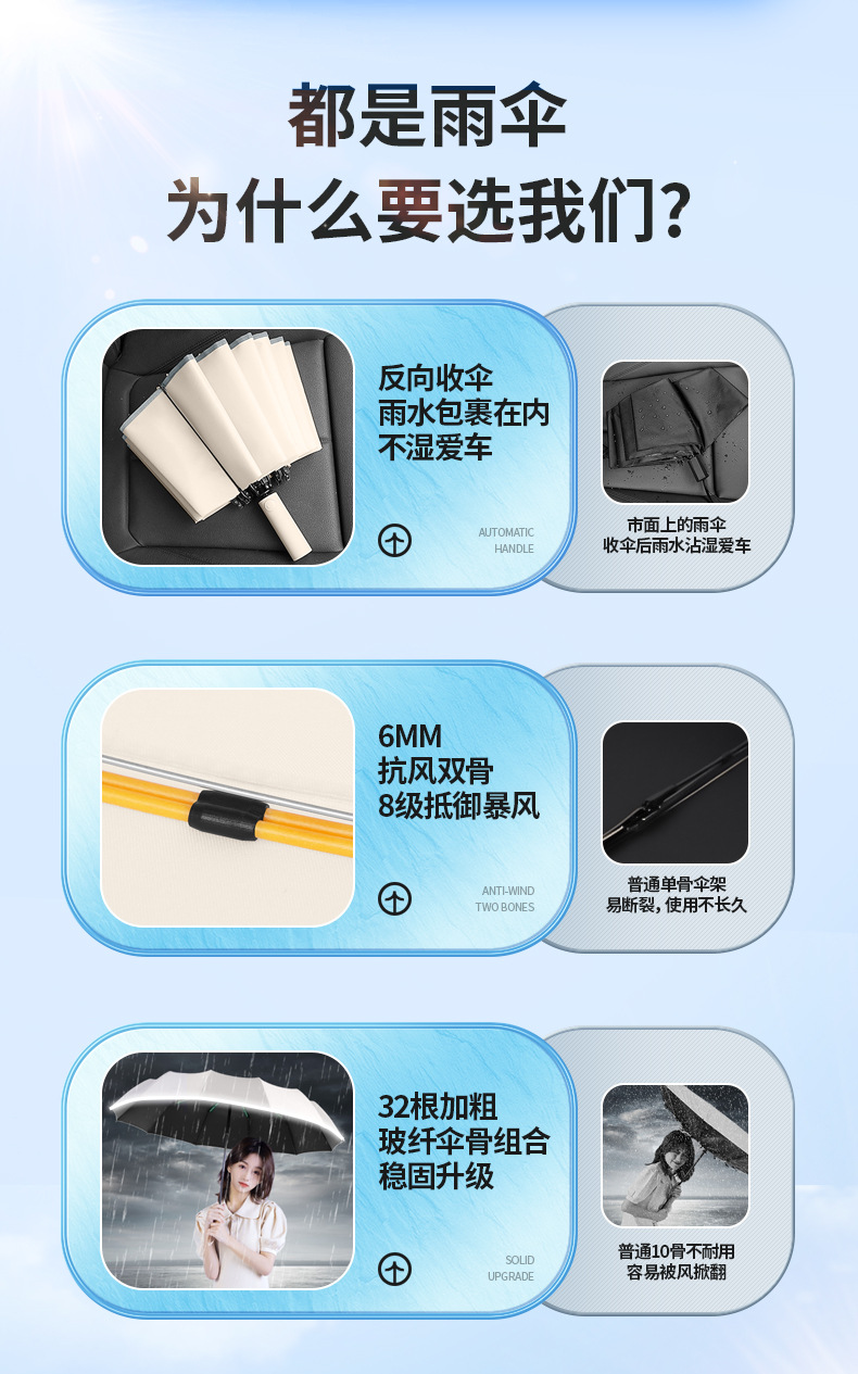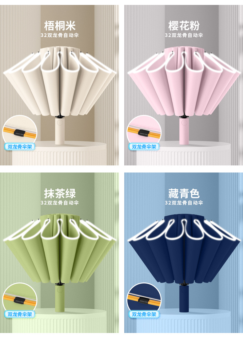deep sea blue-8 bone self-opening umbrella