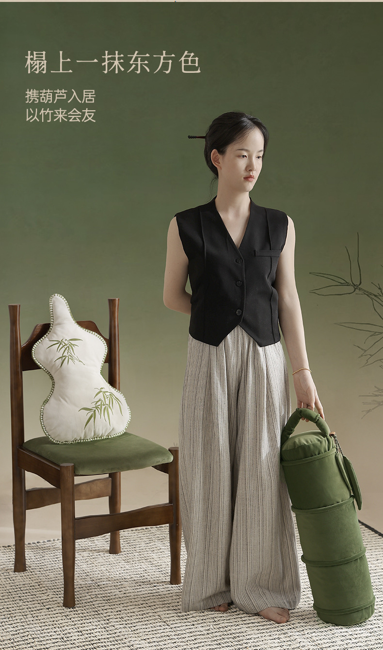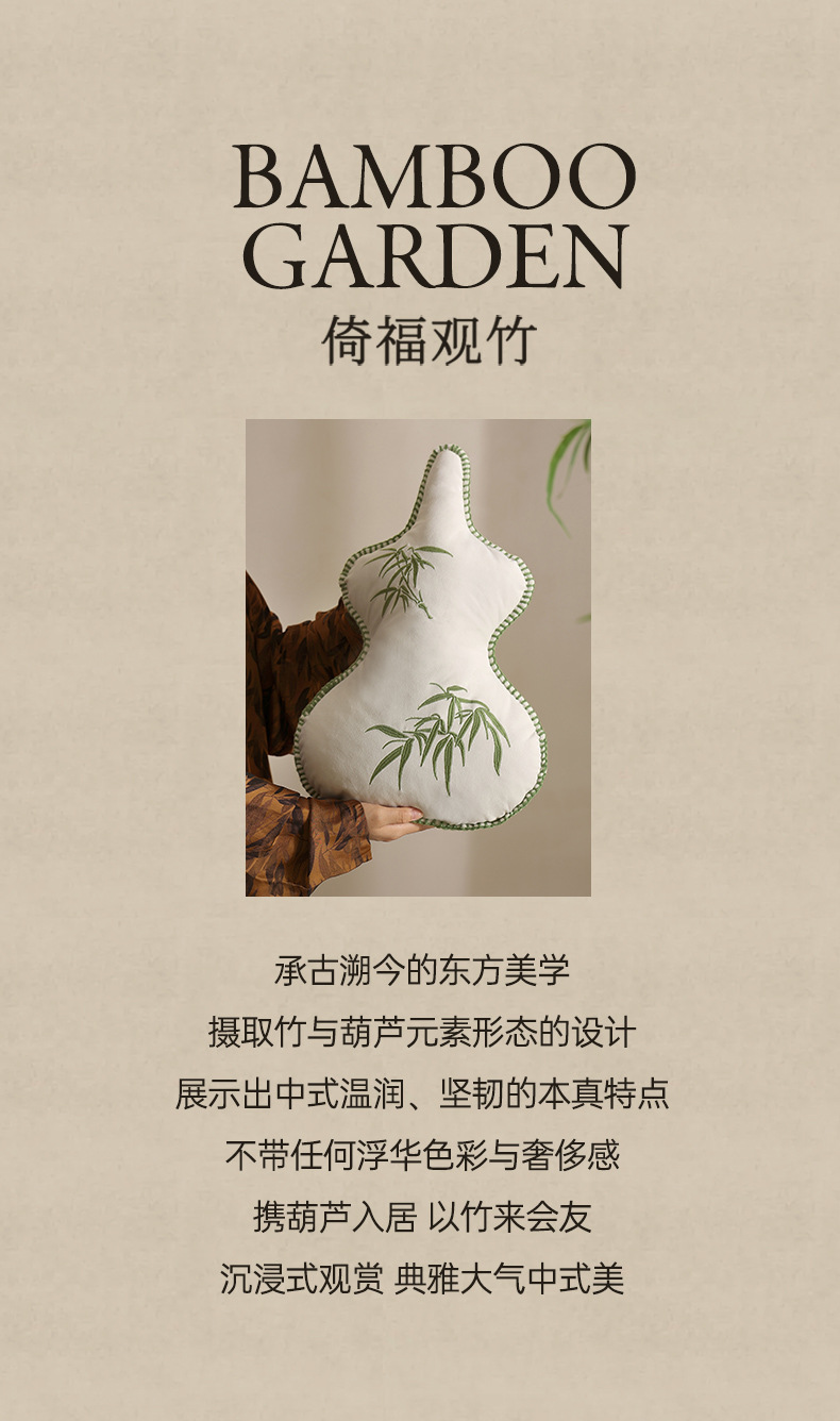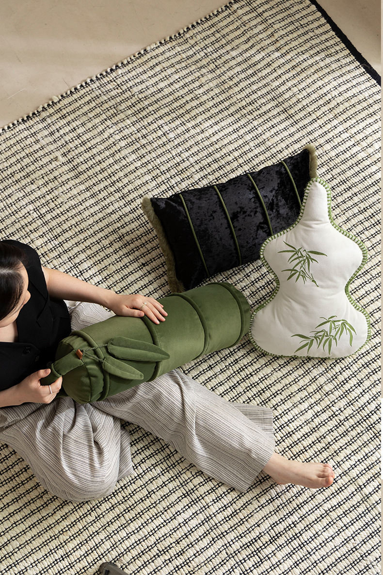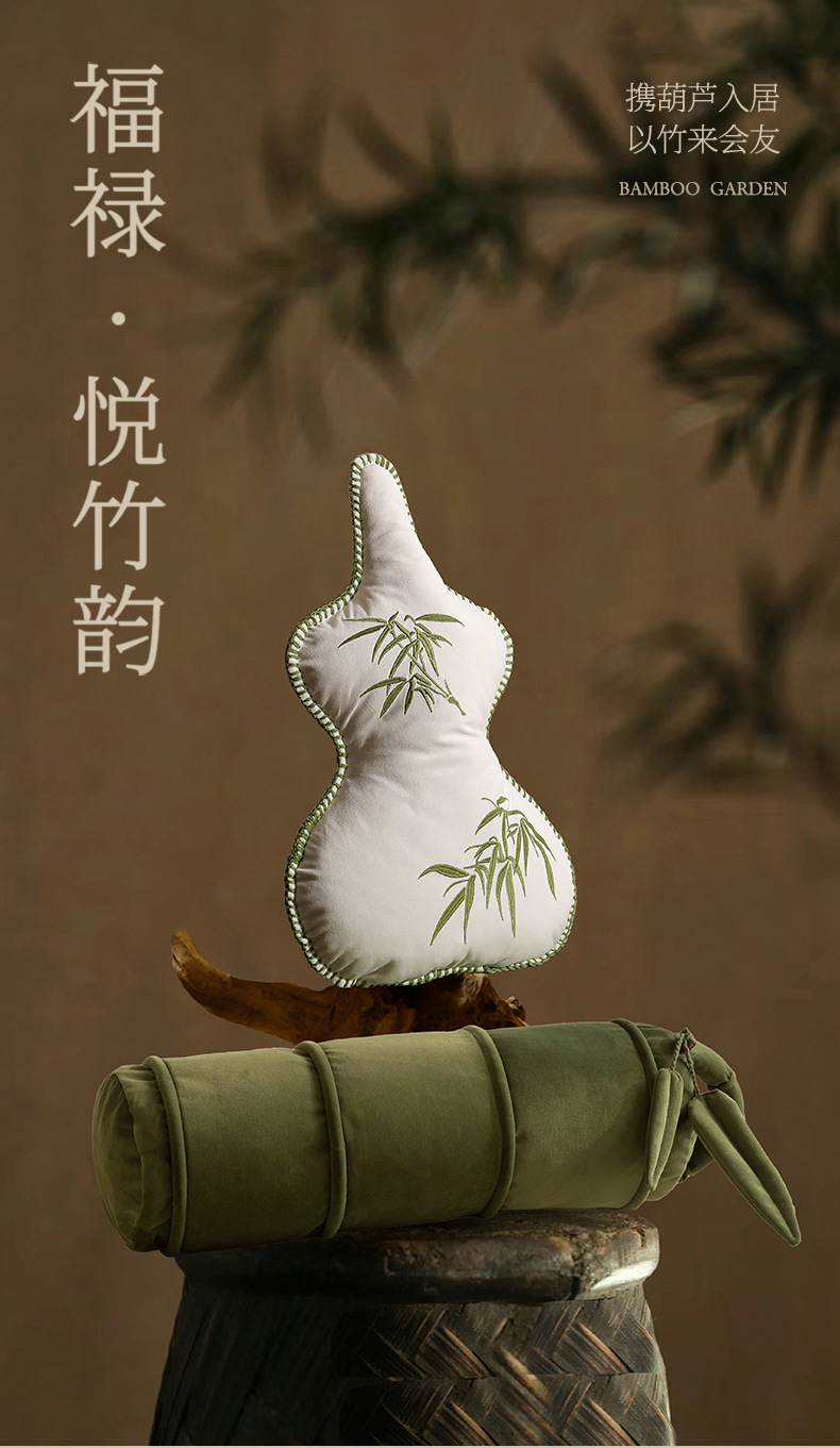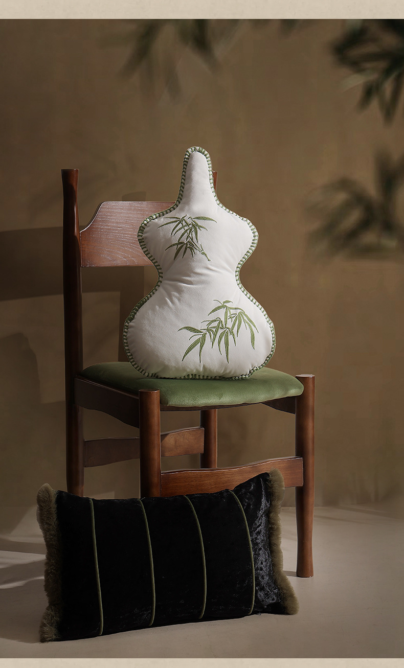 new chinese style advanced oriental bamboo leaf pillow living room sofa gourd embroidered pillow bed cushion for leaning on pillow
