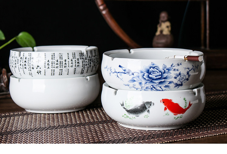 blue and white porcelain ashtray