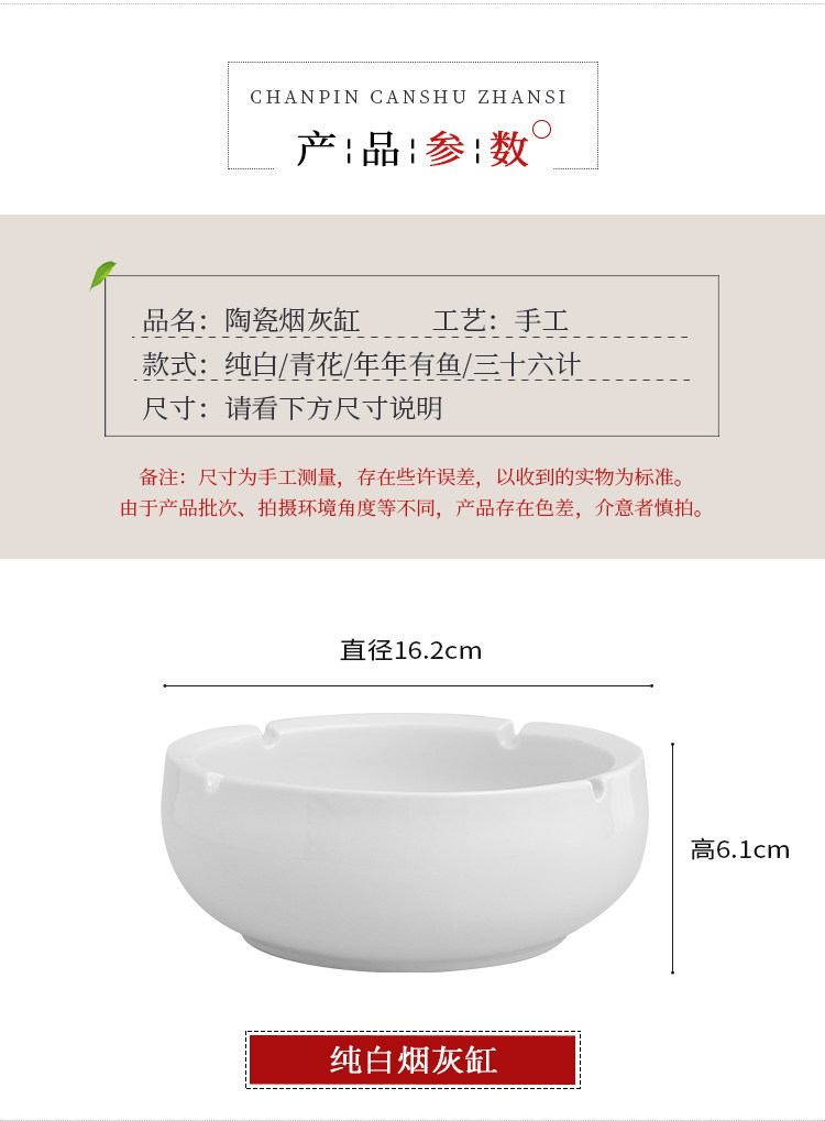 pure white ceramic ashtray