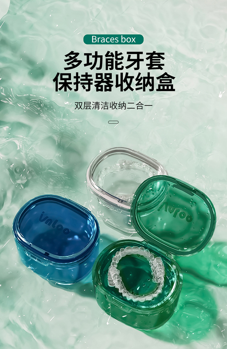 double-layer hollow drain invisible tooth socket storage box portable with cover orthodontic retainer cleaning case denture case