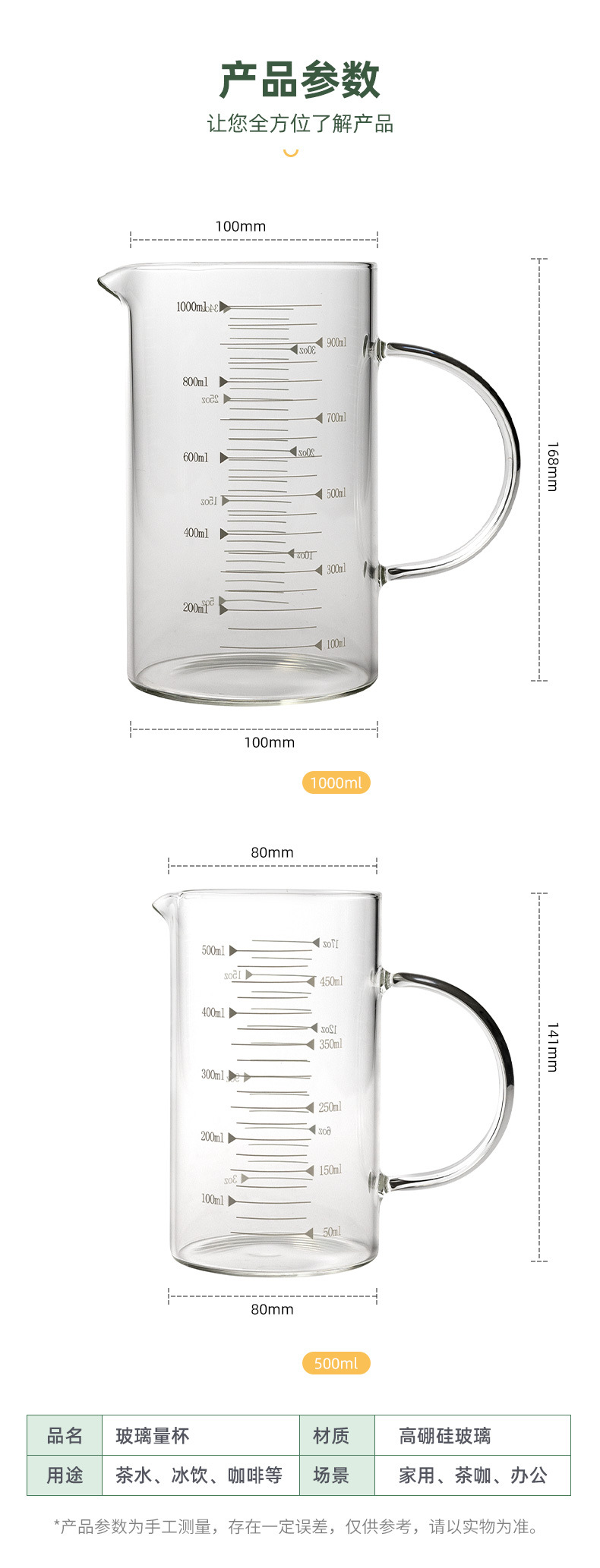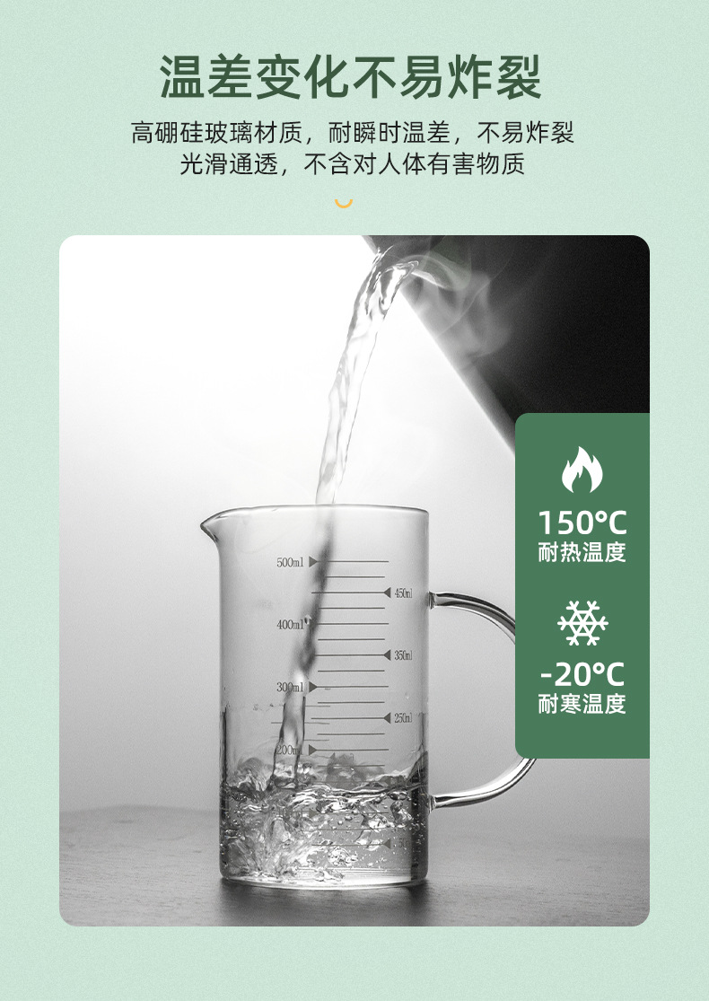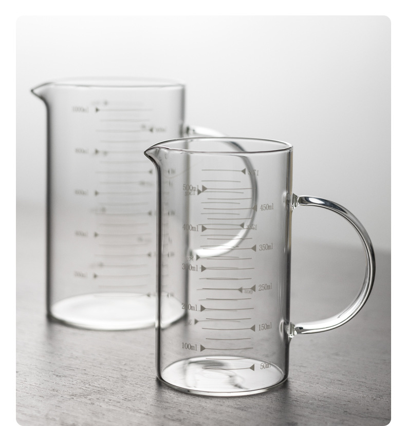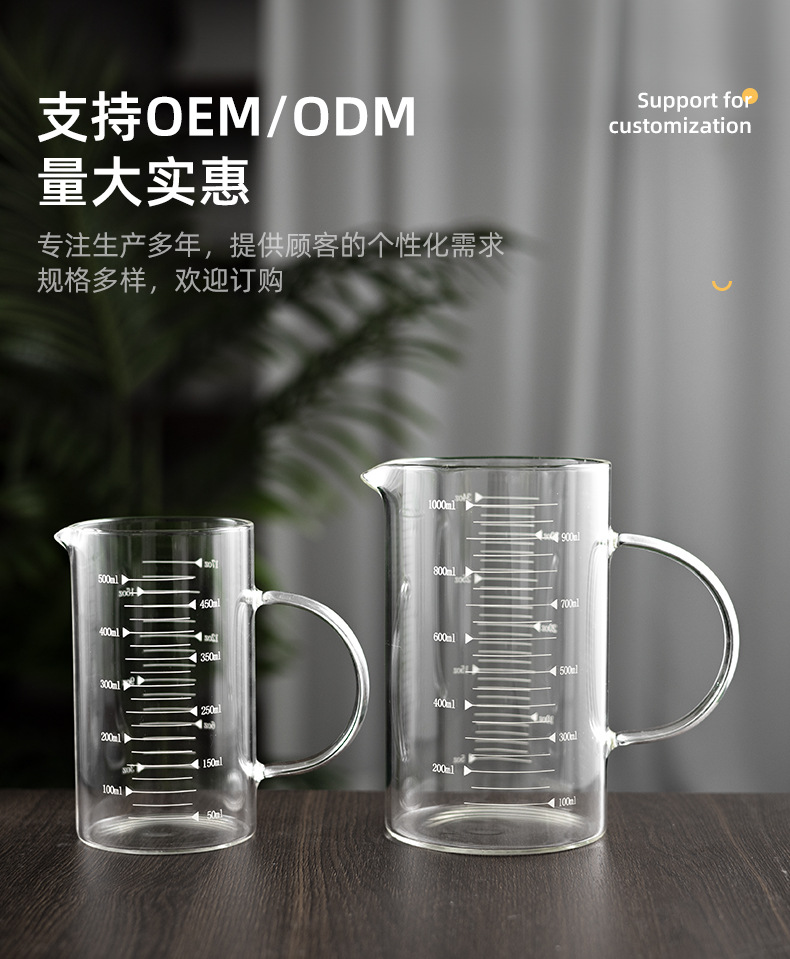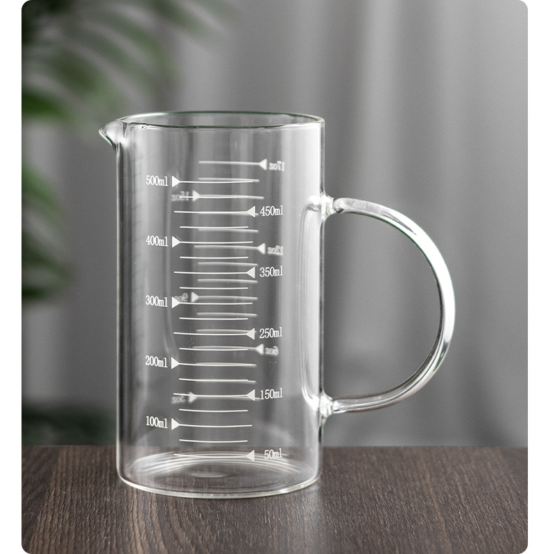 customized wholesale measuring cup with handle glass milk cup household insulated transparent glass beer with scale glass