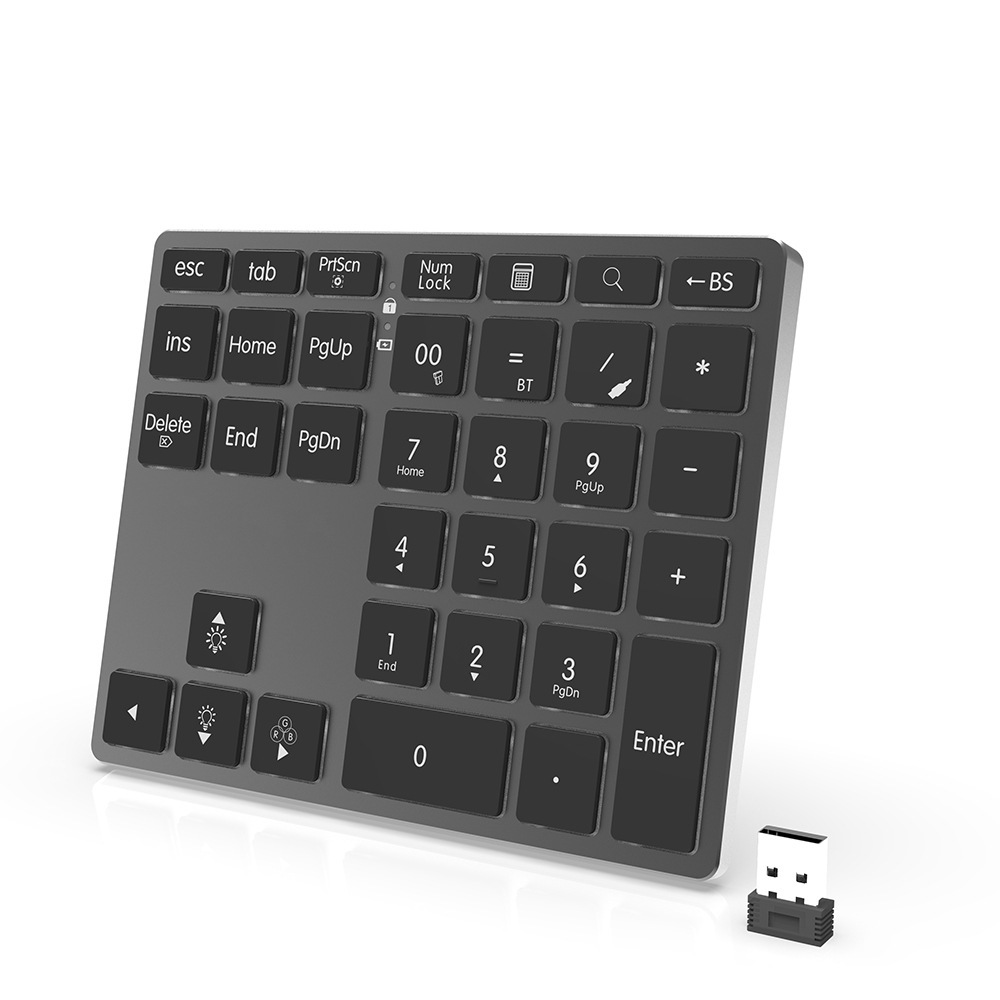 new arrival wireless bluetooth 2.4g wired charging 35 keys aluminum alloy backlit bluetooth digital three-mode keypad