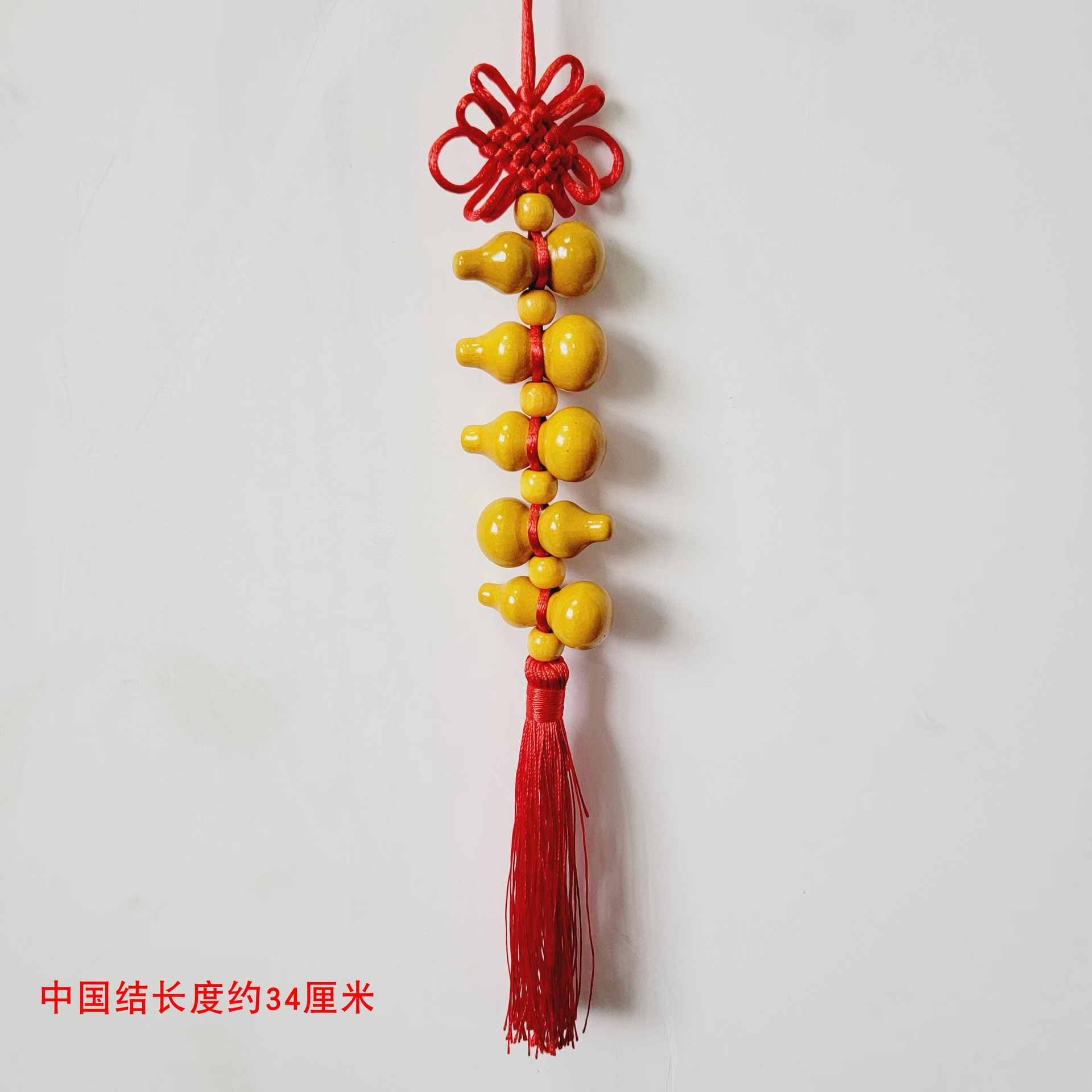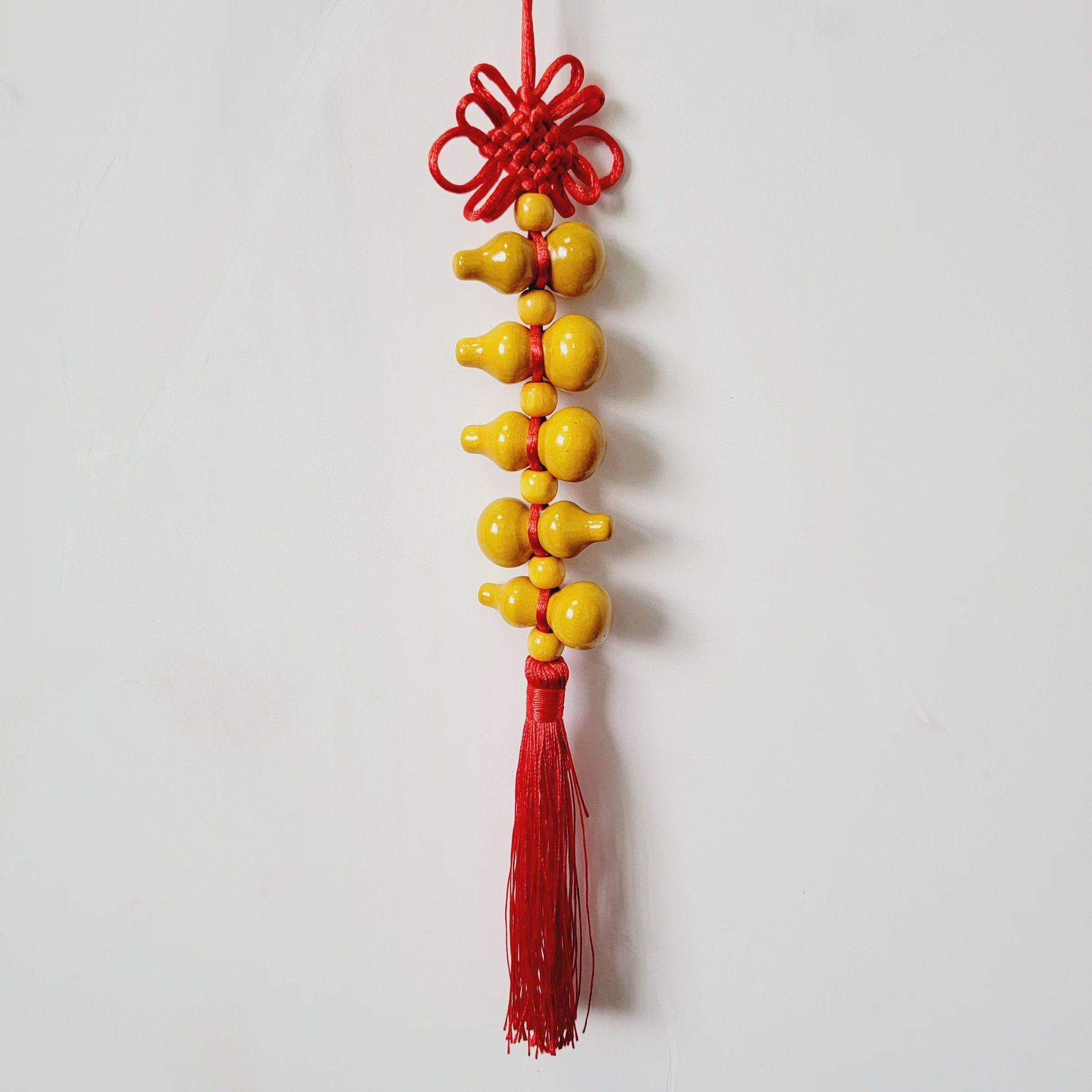 five wooden gourd pure red chinese knots (with wooden bead)