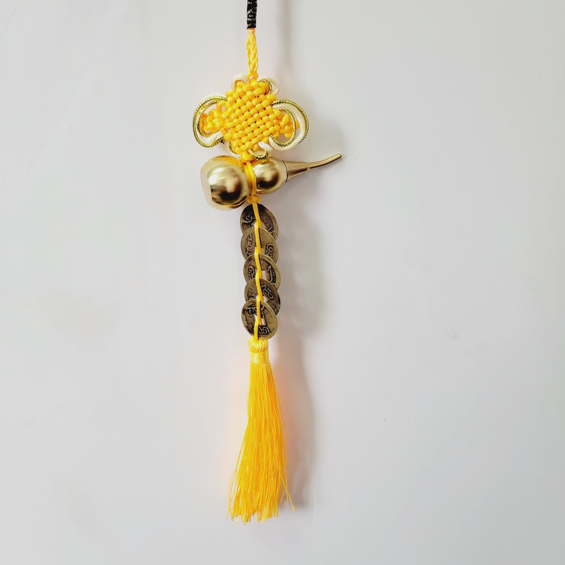 yellow golden edge chinese knot 7cm copper gourd five emperor coins pendants