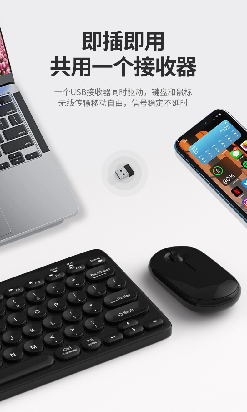 chocolate key cap wireless keyboard and mouse set silent and portable office business cash commodity and quick delivery