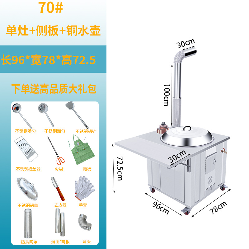 stainless steel thickened 70 single burner stove + side plate + copper kettle