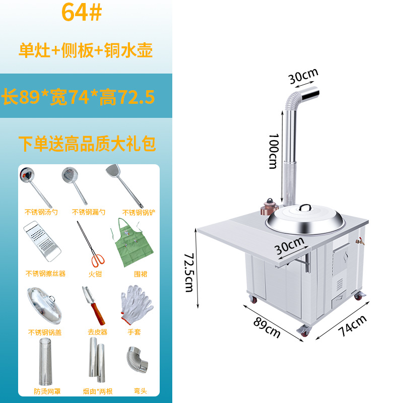 stainless steel thickened 64 single burner stove + side plate + copper kettle